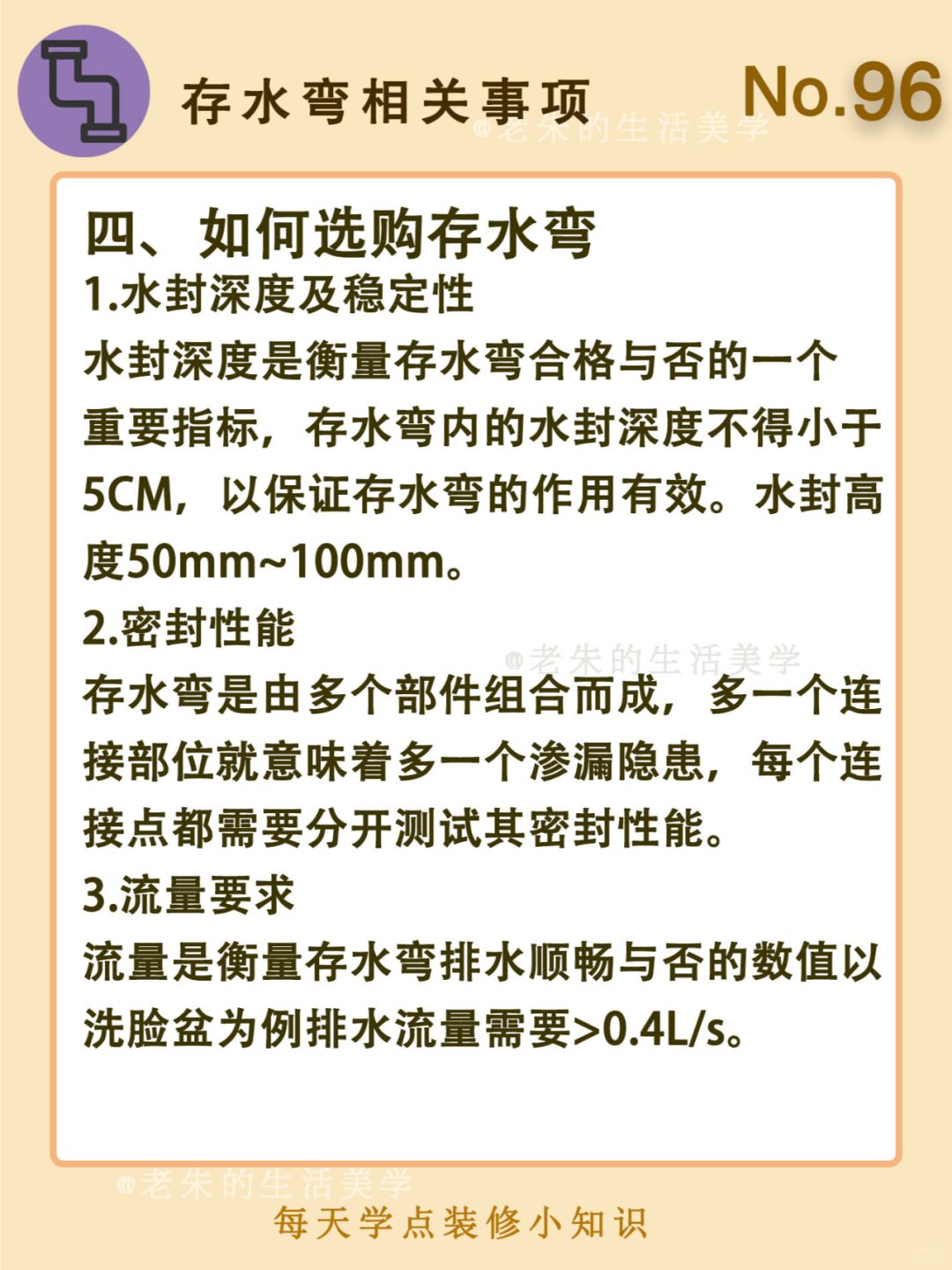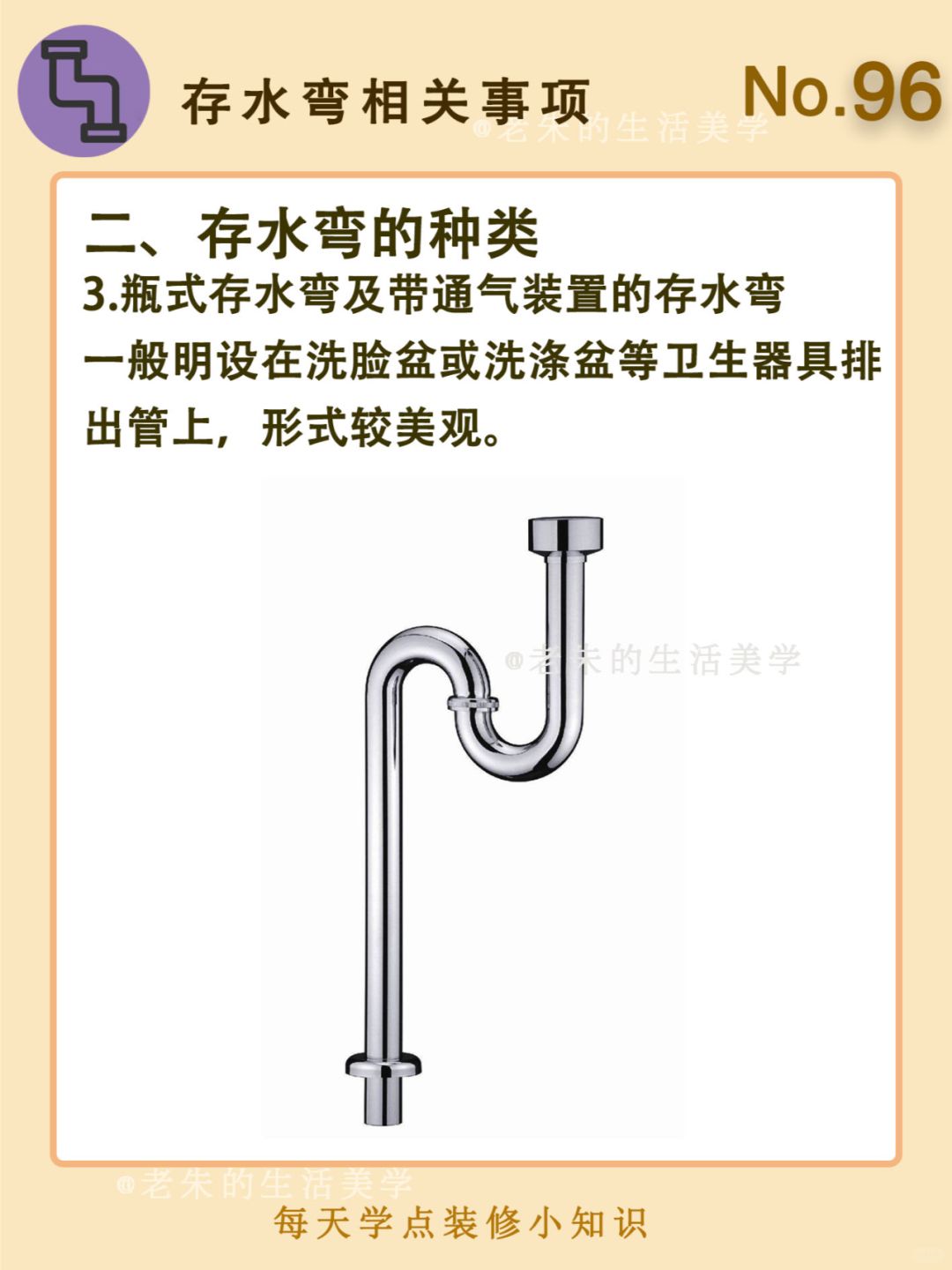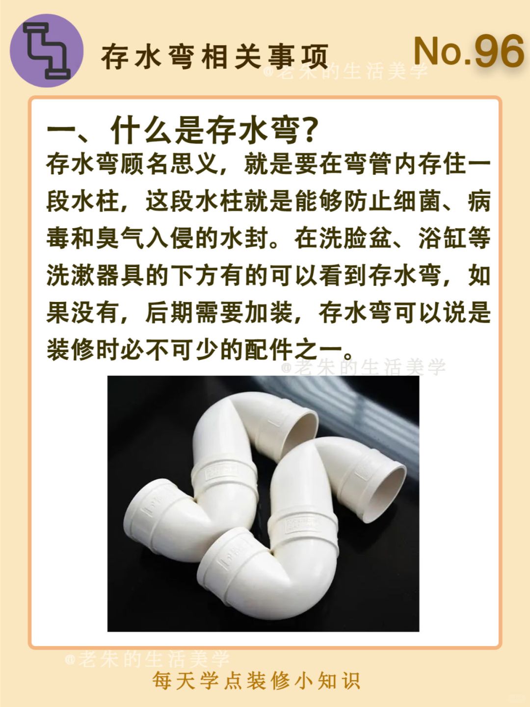 🔆 一、什么是存水弯 二、存水弯的种类 三、存水弯注意事项 四、如何选购存水弯 🔆 我是老朱 📍坐标天津 前上市公司金牌工长🏅 30年施工经验🛠 承接天津新房装修/老房改造 精心整理关于设计&施工&装修的攻略📝 关注我每日更新🗓 也可以在评论区留下您宝贵的想法与建议💓 让您装修不走弯路✅