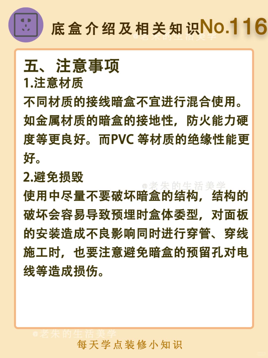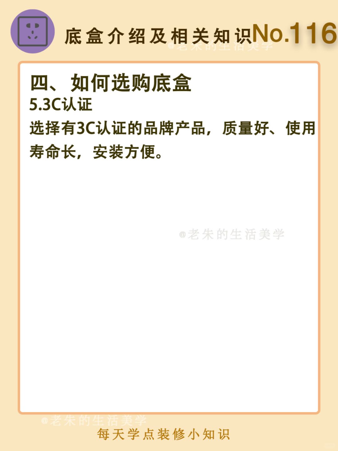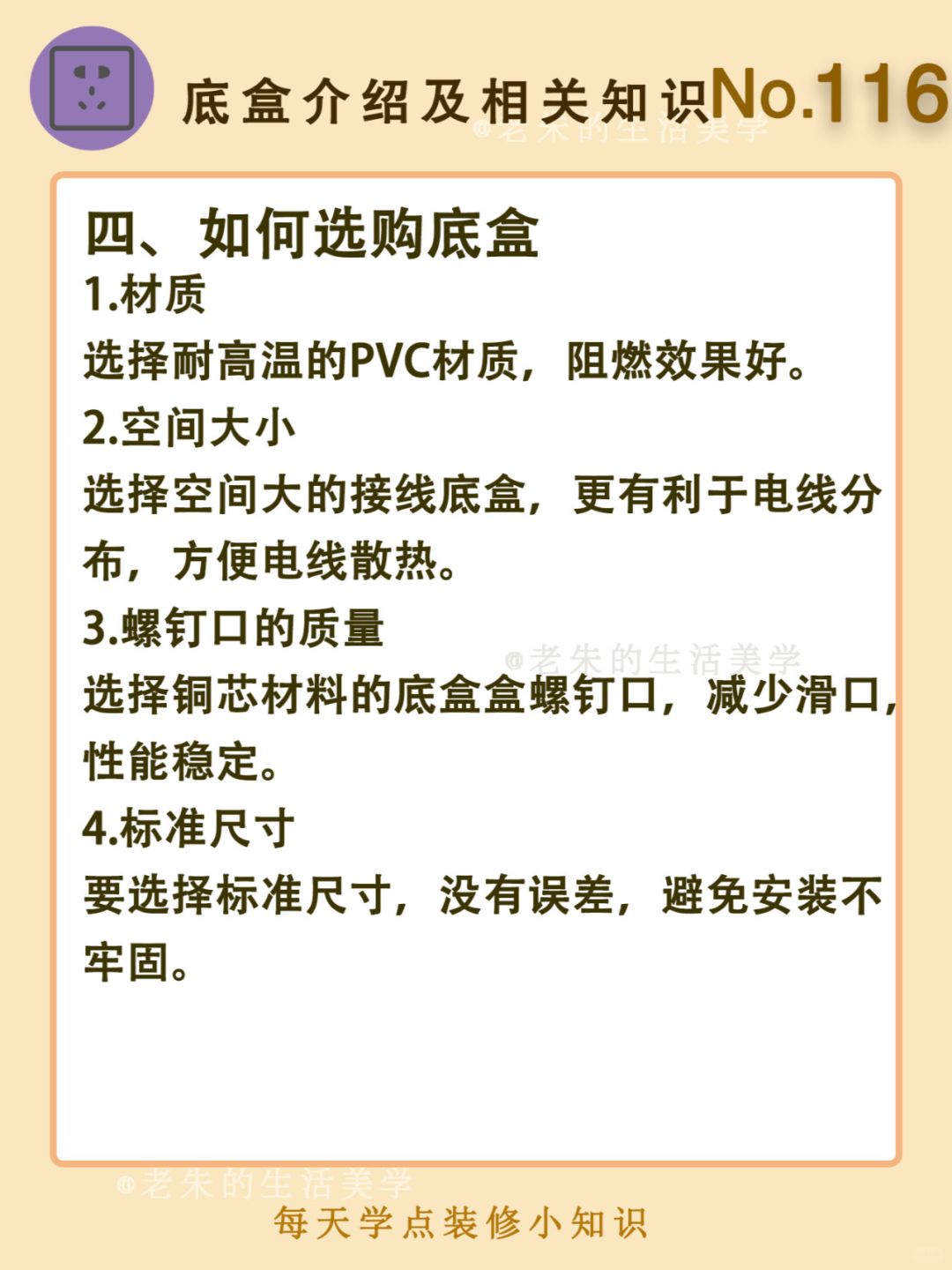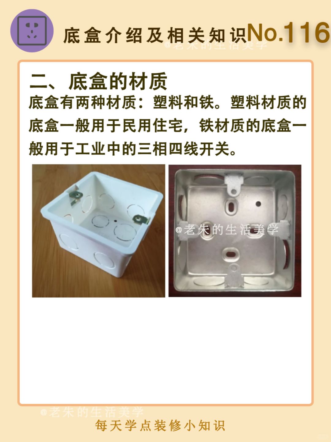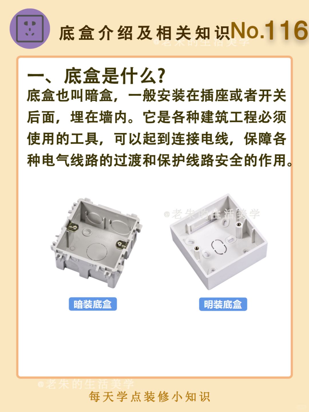 🔆 一、底盒是什么? 二、底盒的材质 三、底盒的分类 四、如何选购底盒 五、注意事项 🔆 我是老朱 📍坐标天津 前上市公司金牌工长🏅 30年施工经验🛠 承接天津新房装修/老房改造 精心整理关于设计&施工&装修的攻略📝 关注我每日更新🗓 也可以在评论区留下您宝贵的想法与建议💓 让您装修不走弯路✅