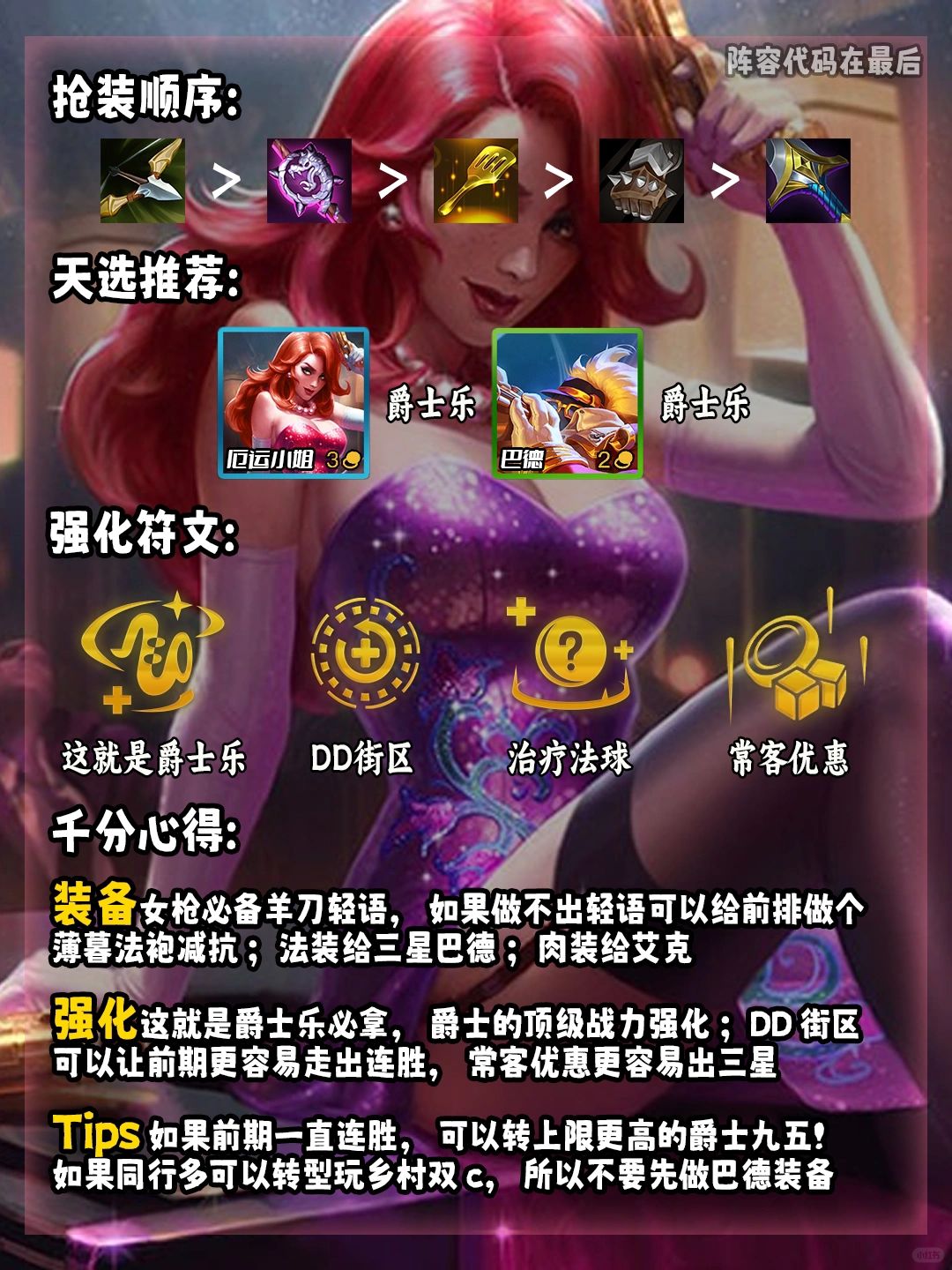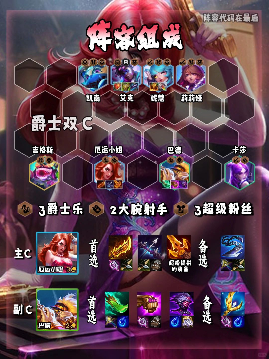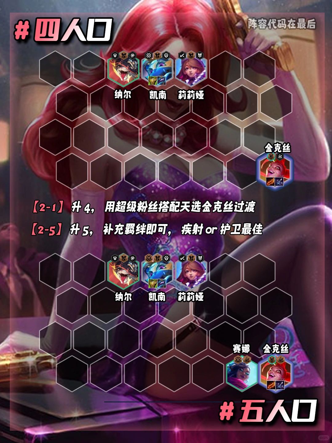 【2-1】升4级,前期用3超级粉丝搭天选金克丝过度