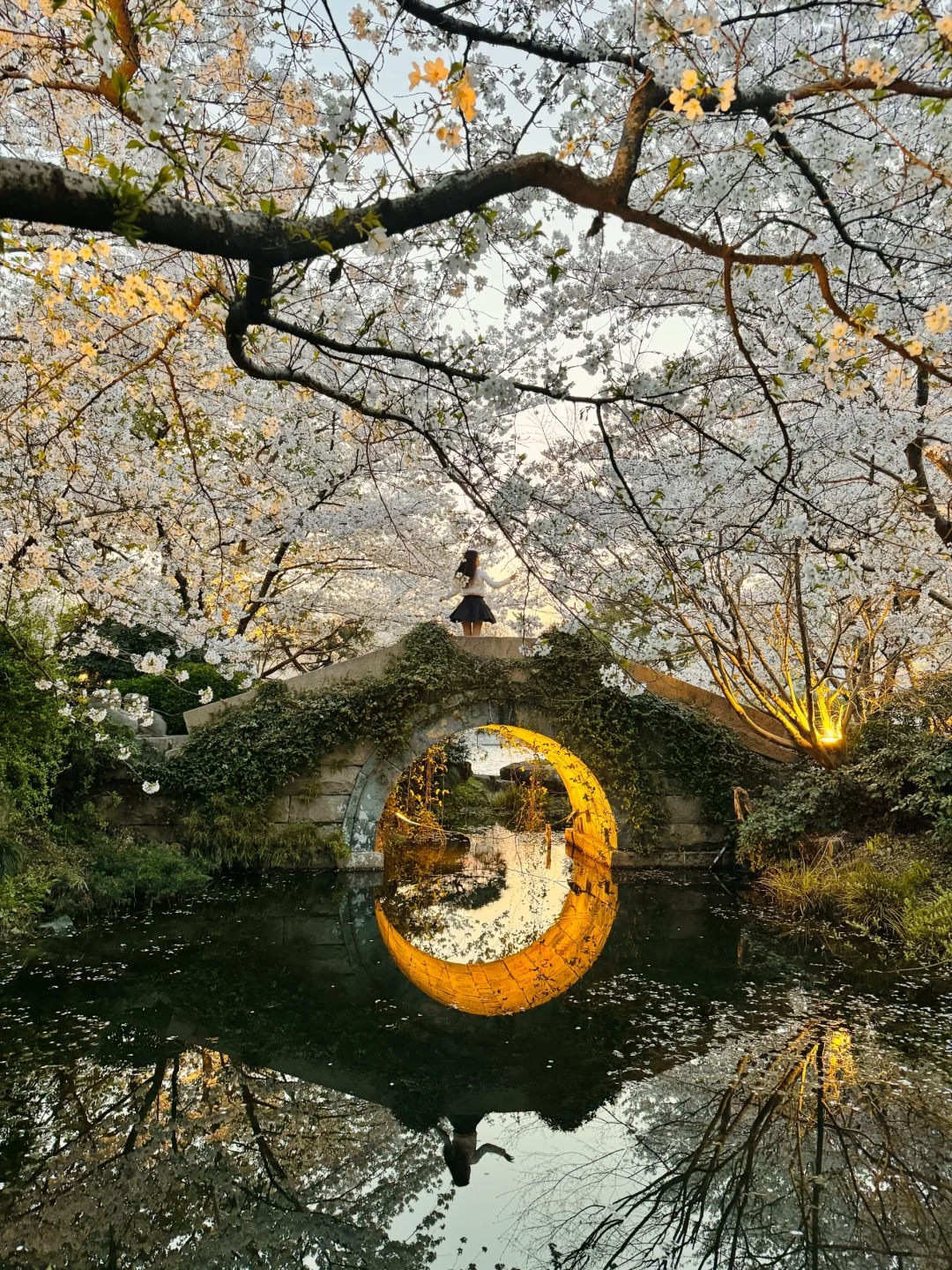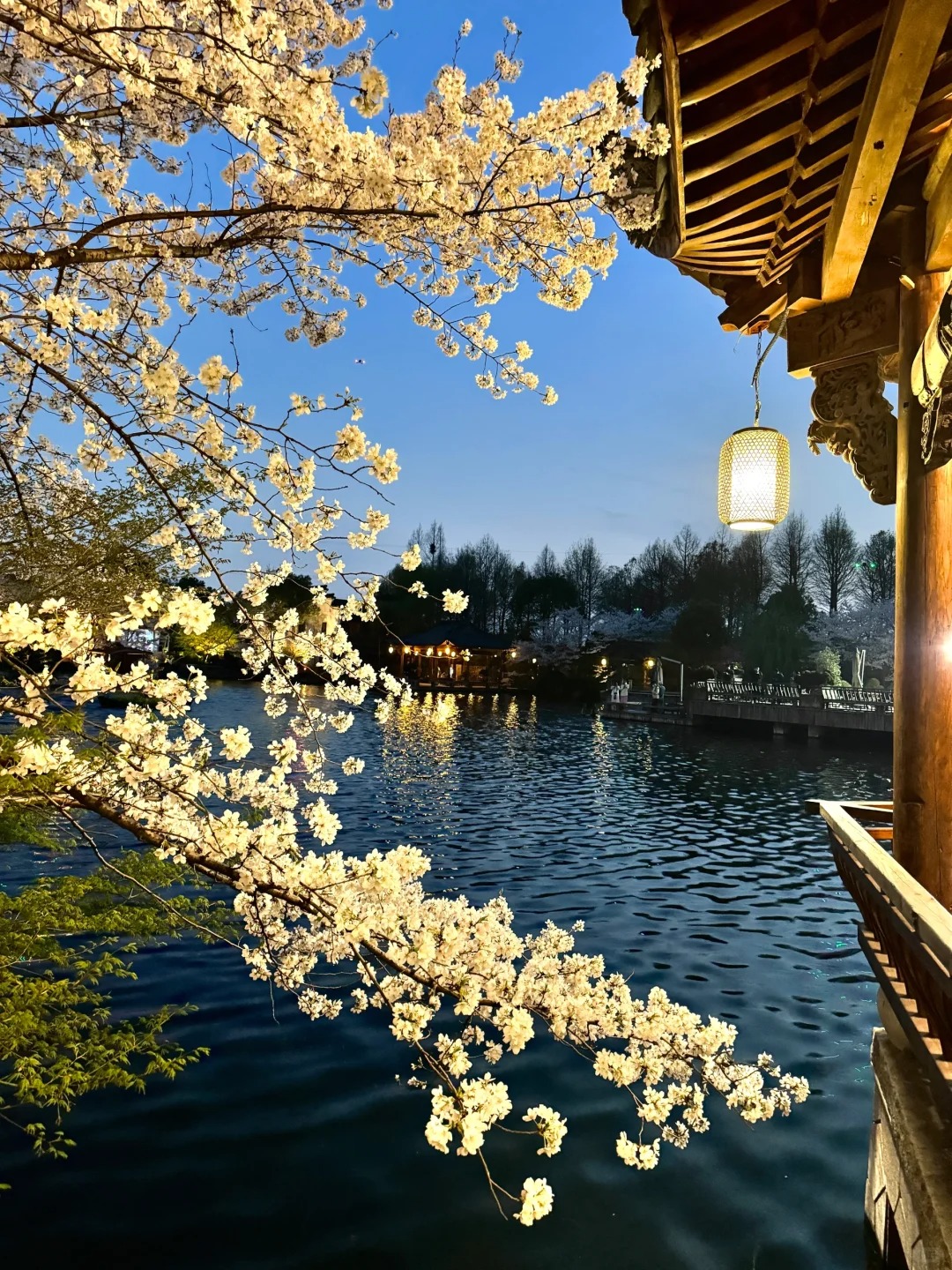 以为武汉已经够美了,直到我去了这里…… - 刚刚追完武汉的樱花 马不停蹄的赶到杭州 这里的樱花结合建筑真的巨好看 尤其蓝调时候 院子里的灯会璀璨 冷暖色的对比真的太美了! - 📍:杭州中国院子·梦溪苑 📸:iPhone15promax 📅:2024.3.26 🎫:80r