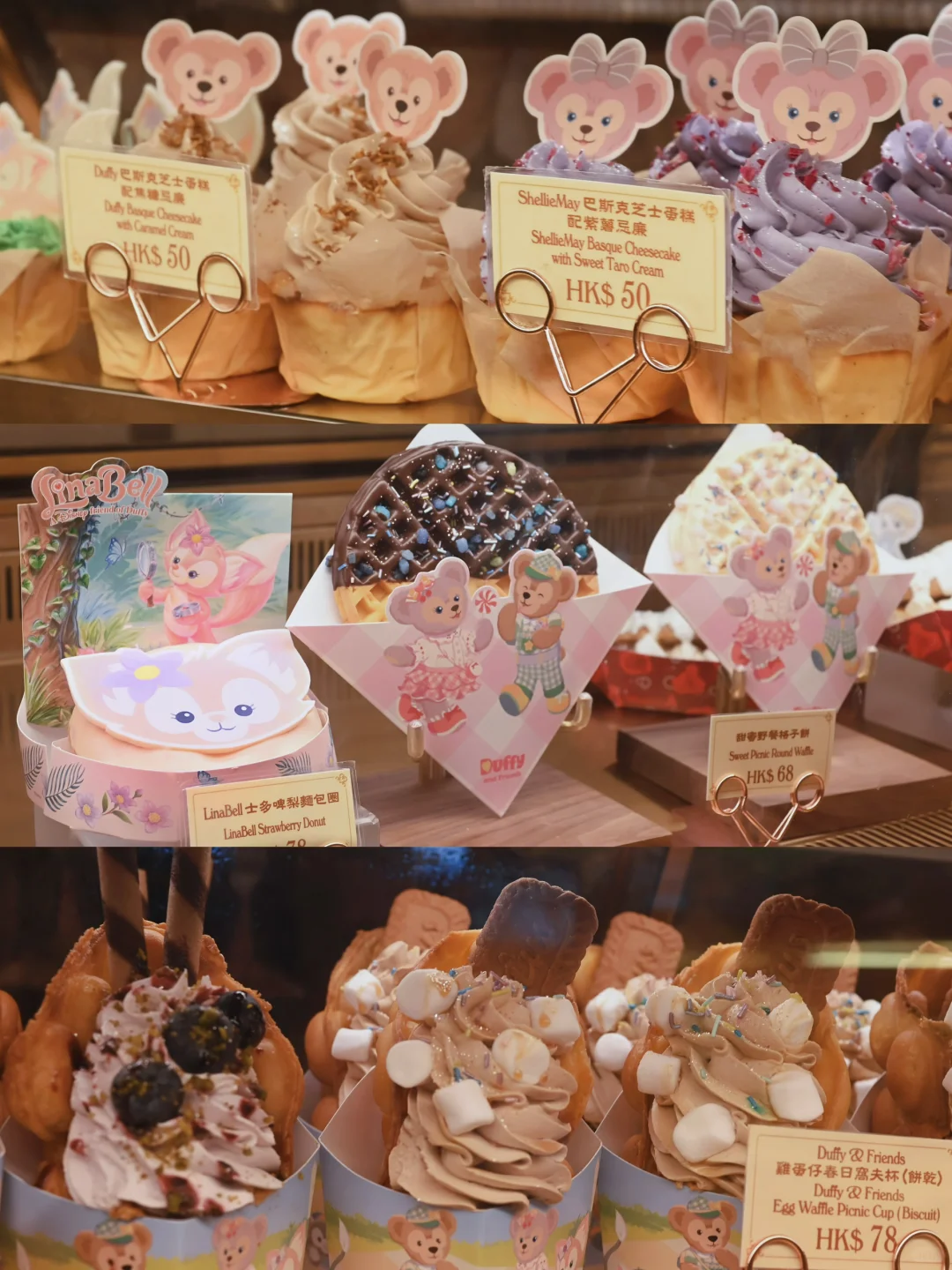 7⃣达菲与好友萌系美食颜值好高啊!户外小食亭、广场饭店、大街餐厅和芊彩餐厅都有超赞的春日限定喔,北海道牛乳配白桃味软雪糕和窝夫棉花糖很值得一试😋