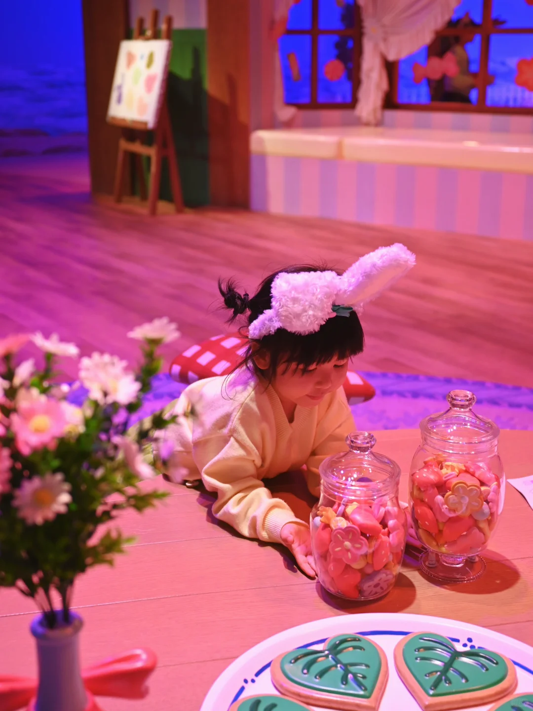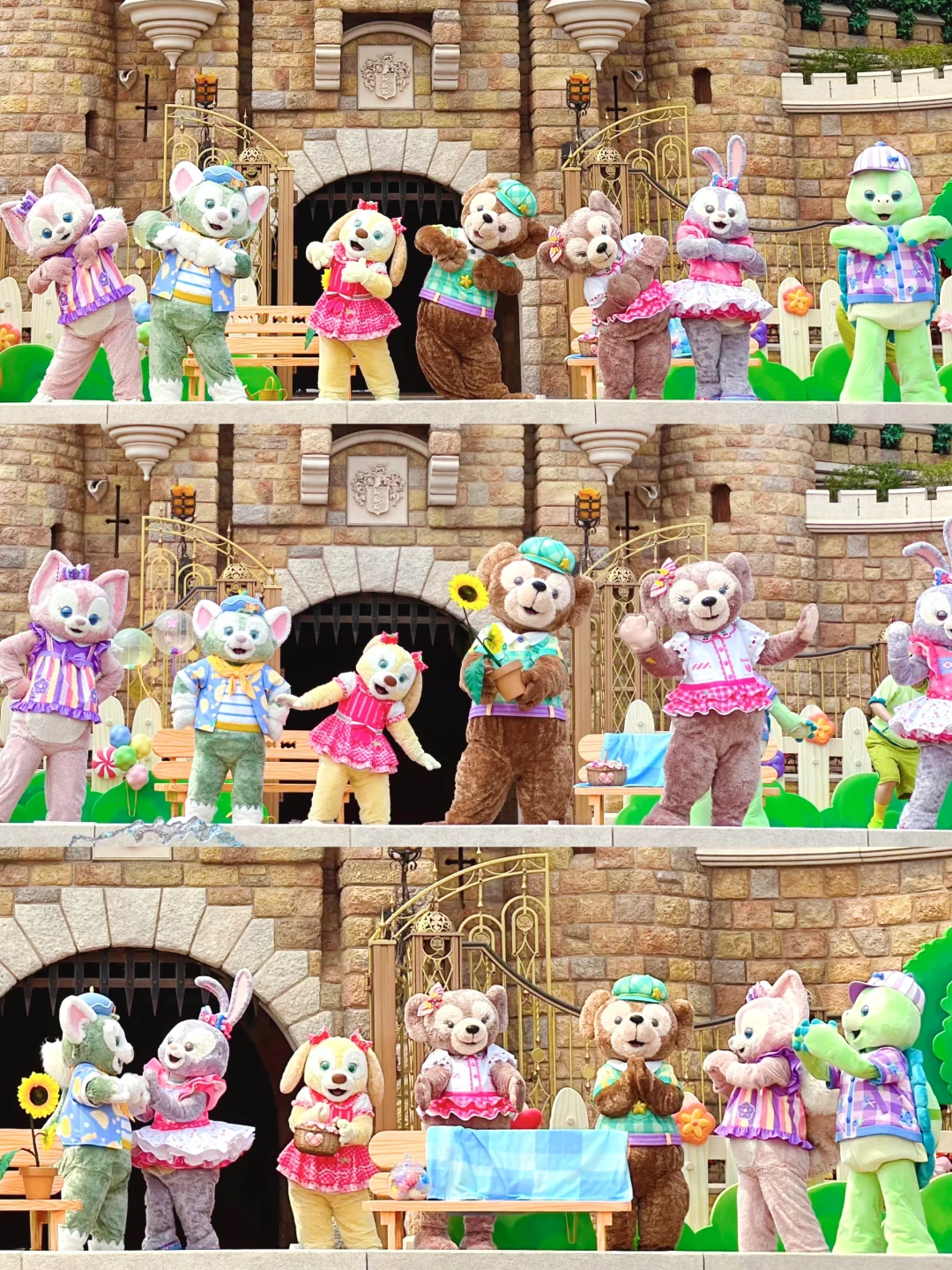 奇妙梦想城堡前的舞台布置成花花绿绿的草地,正是七位好萌友的野餐好去处。他们穿上了像糖果一样甜的春装,萌态百出😍。表演时间大概15分钟