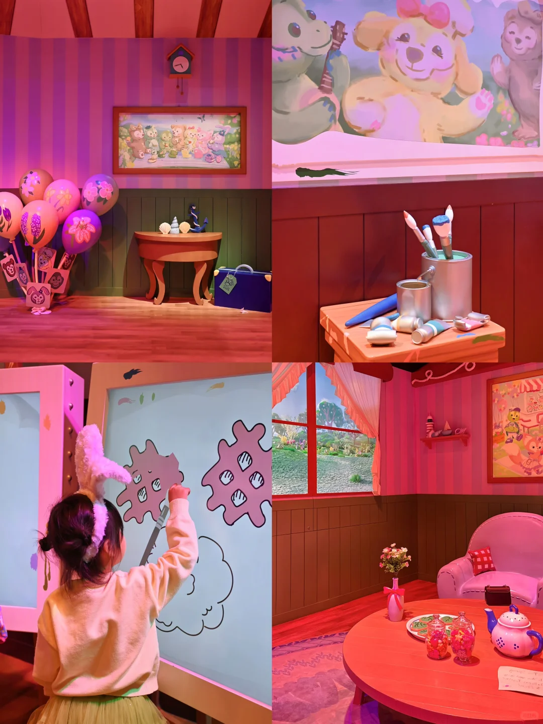 屋内还原了达菲与好友故事中的生活场景,还会根据季节变换布置。玲娜贝儿会与其他达菲与好友一起在达菲与好友游玩屋跟大家见面,不需要另外领取迪士尼预约等候卡