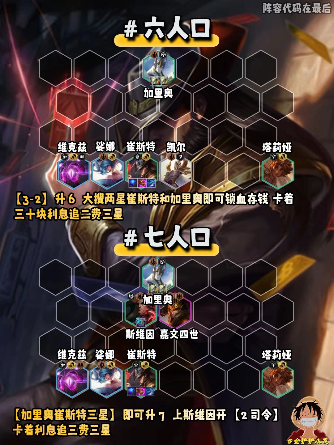 【3-2】升6级,大搜阵容成型,两星崔斯特和加里奥即可锁血存钱,卡着30利息追三星二费卡