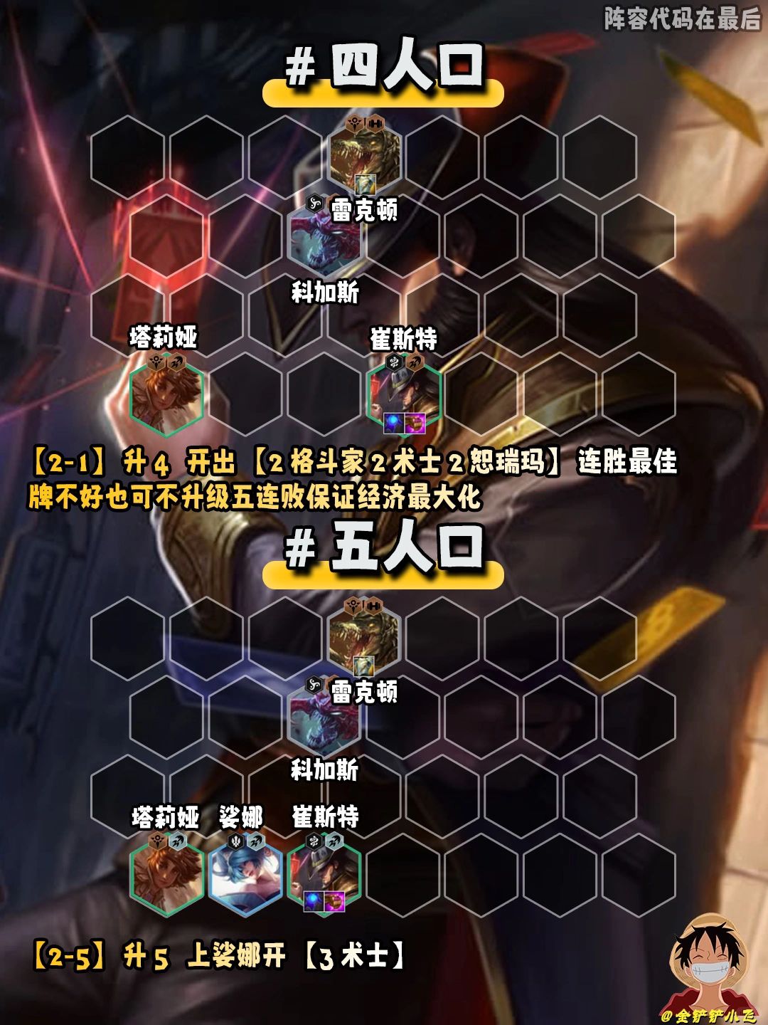 【2-1】升4级,前期用2格斗2术士2恕瑞玛