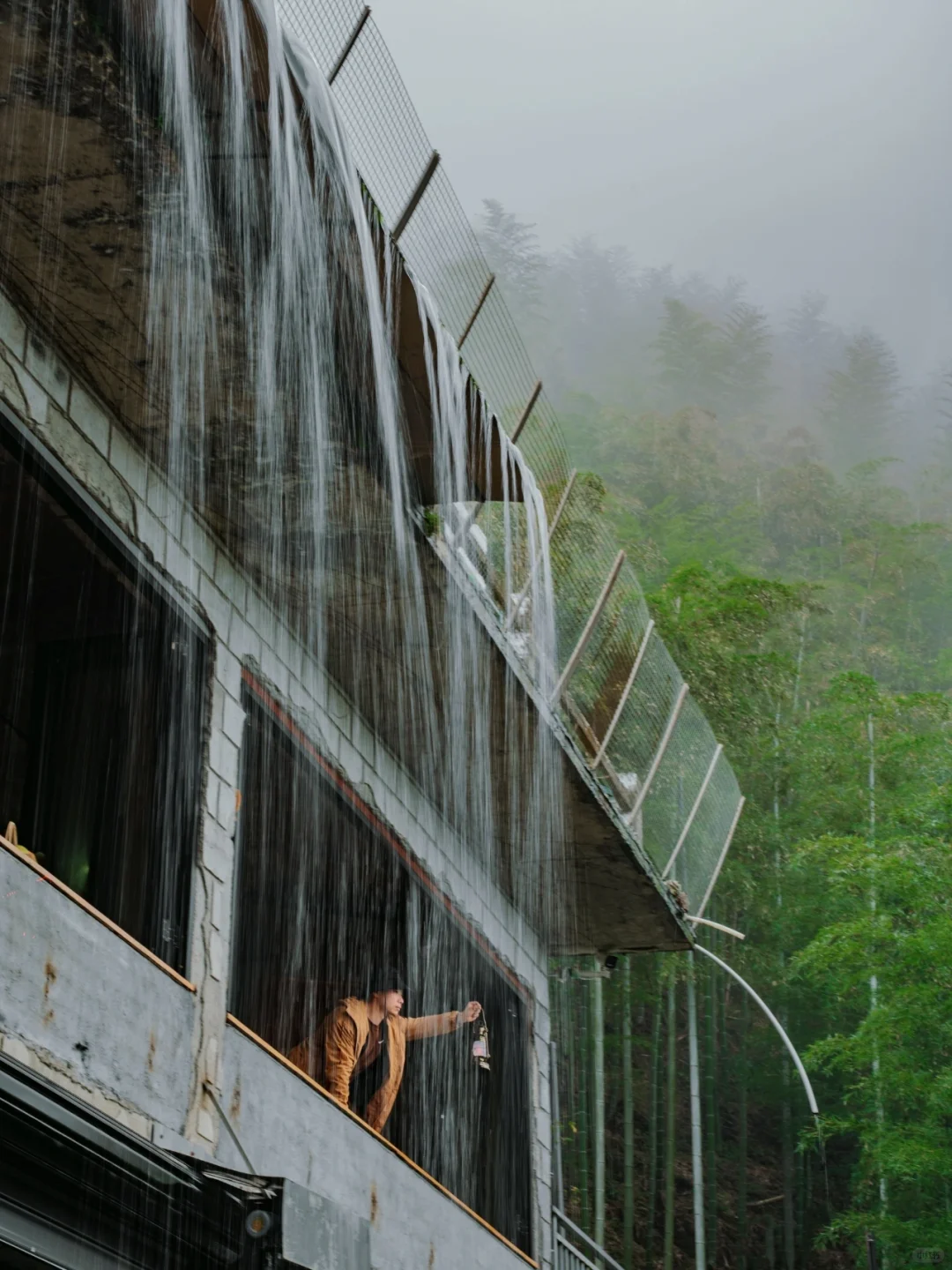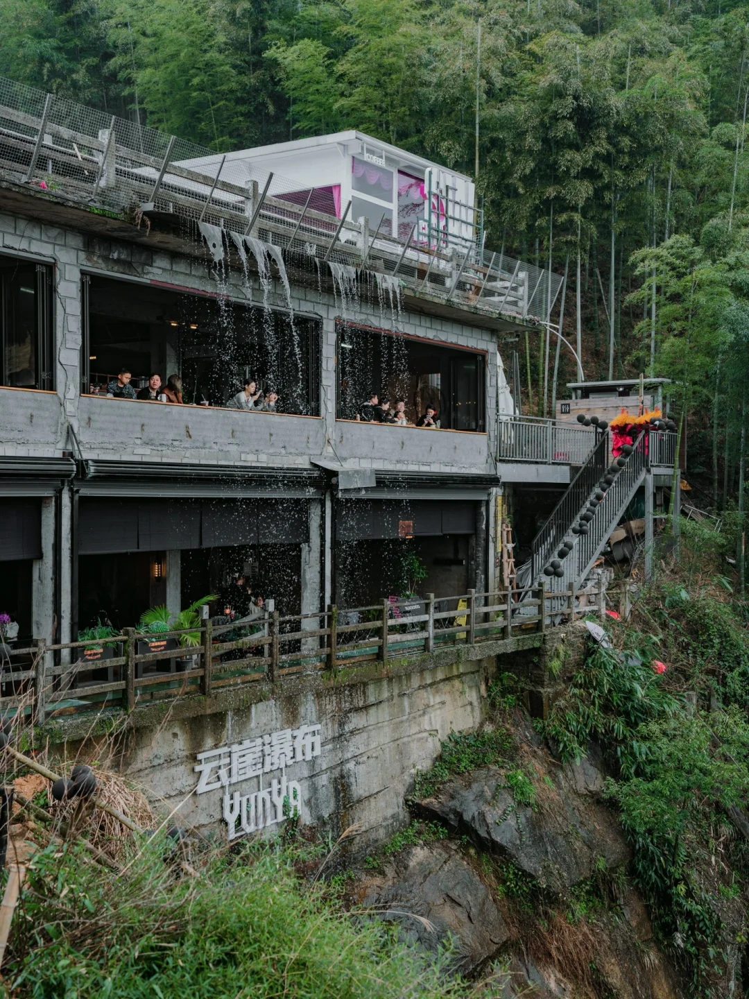 安吉山崖间的瀑布里居然藏着一家咖啡馆~
