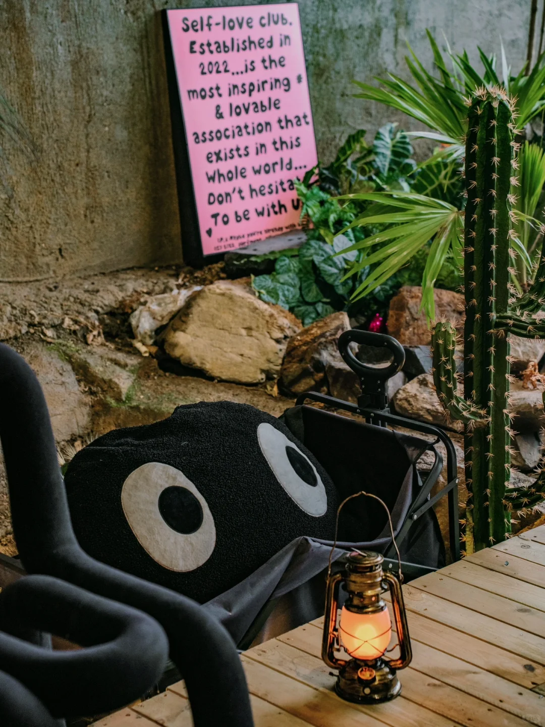 坐在躺椅上,看着瀑布从楼上缓缓流下~