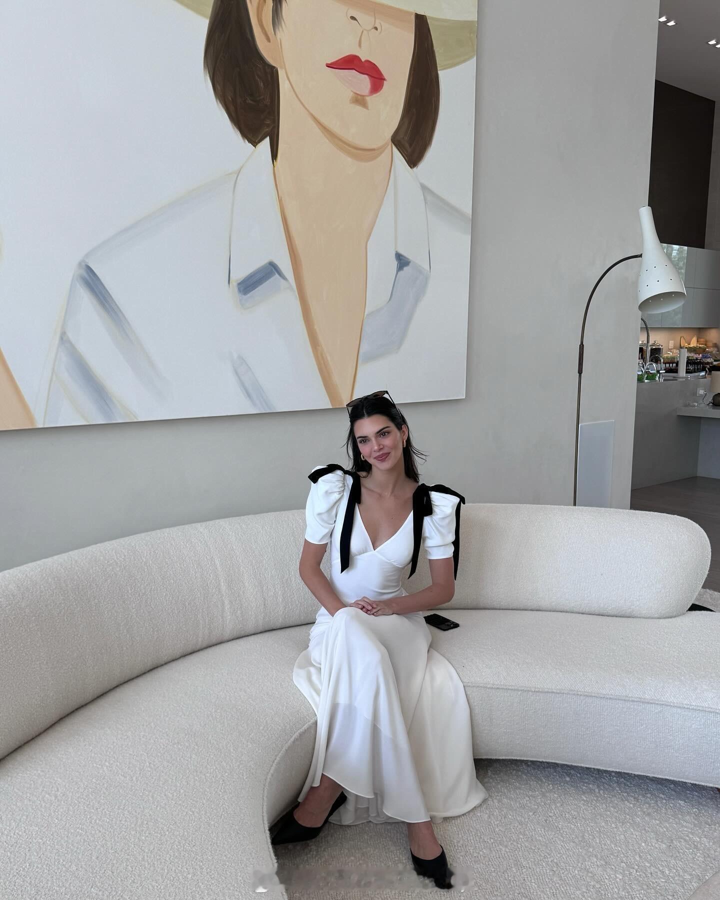 Kendall肯豆最新私服解析,白色真丝绉纱长款连衣裙搭配黑色高跟鞋,优雅大方又不失高贵~