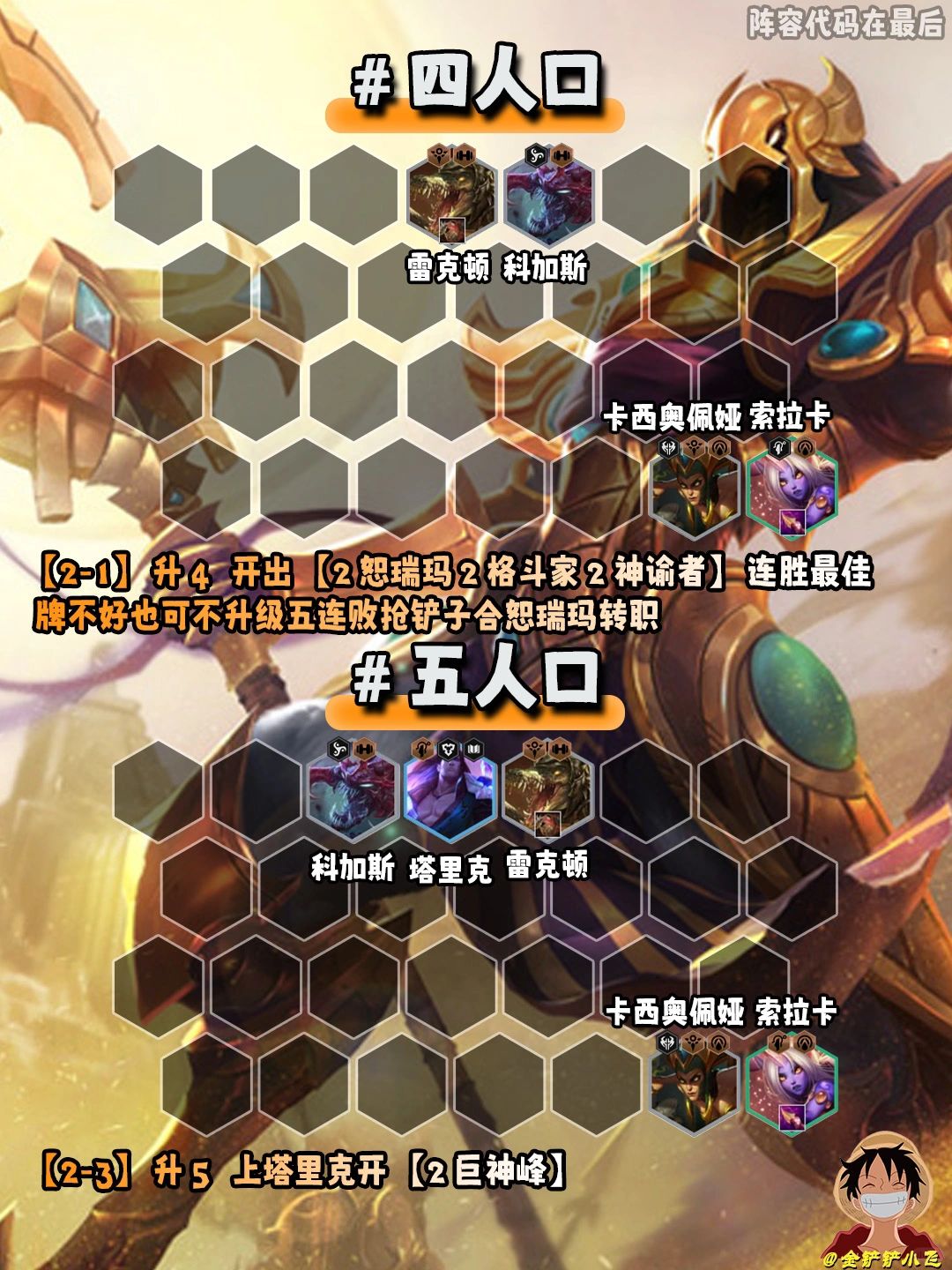 2️⃣这套阵容上线就是三星四费合恕瑞玛转得五费卡外援