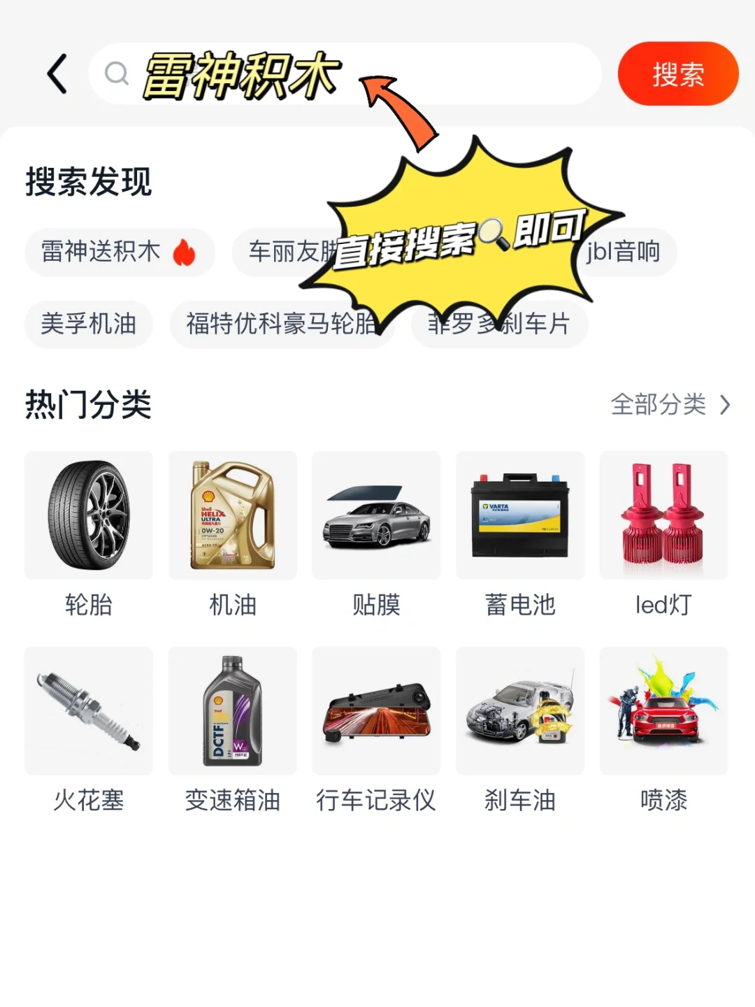 ✔️Tips:上「途虎养车」搜🔍“雷神积木”即可