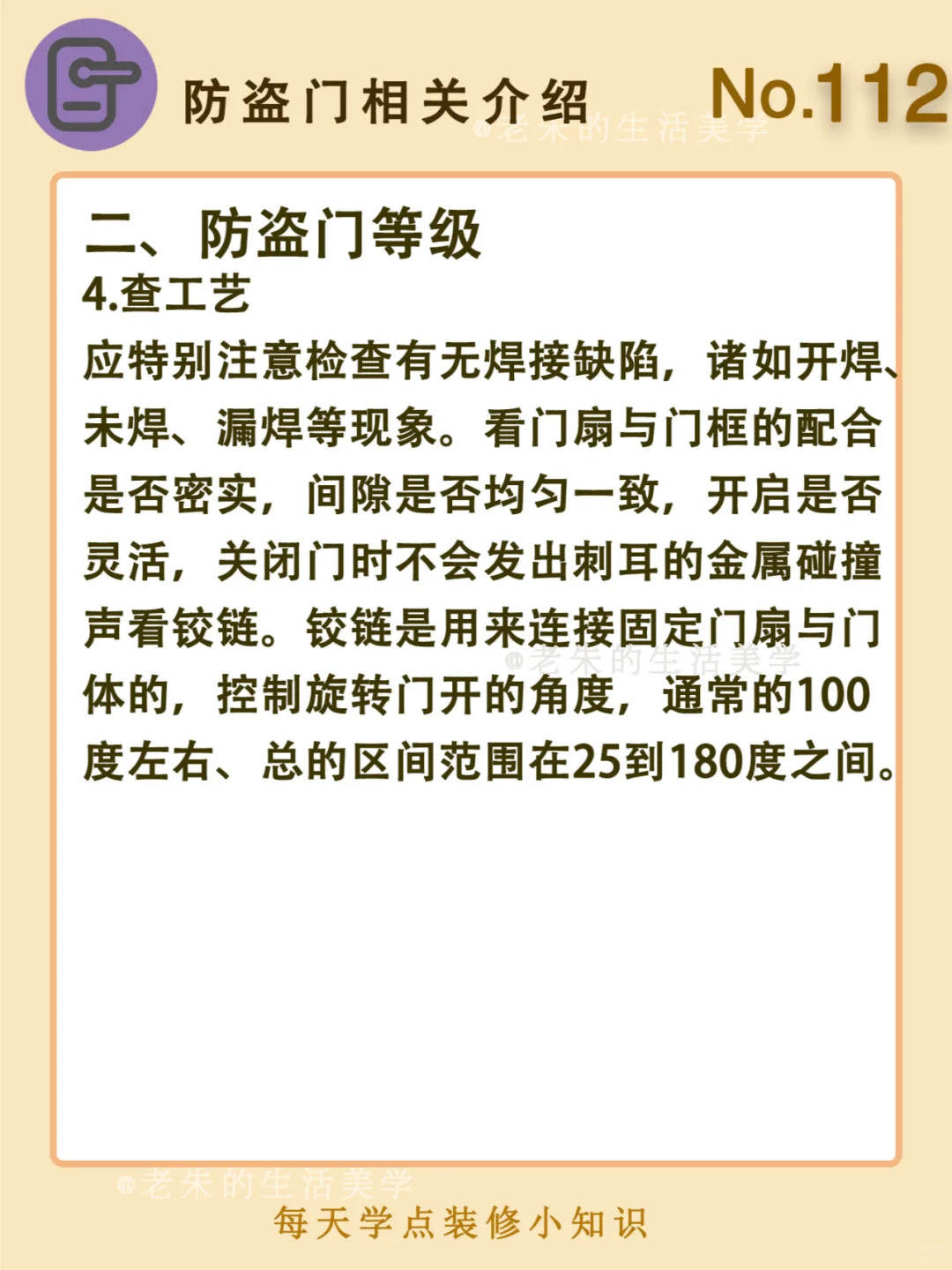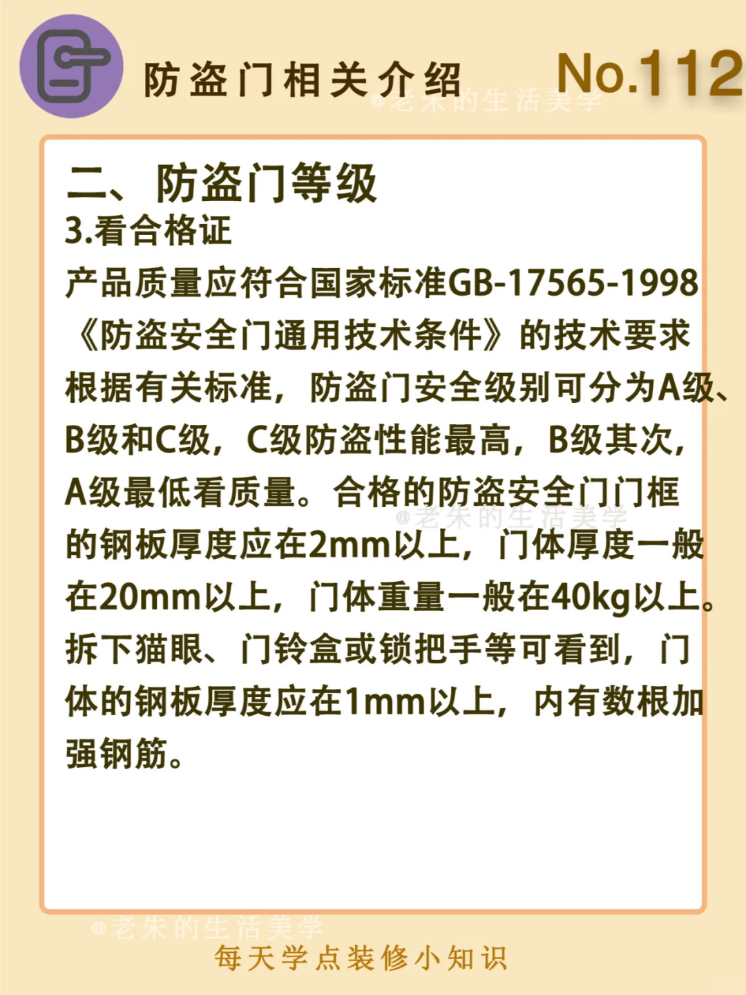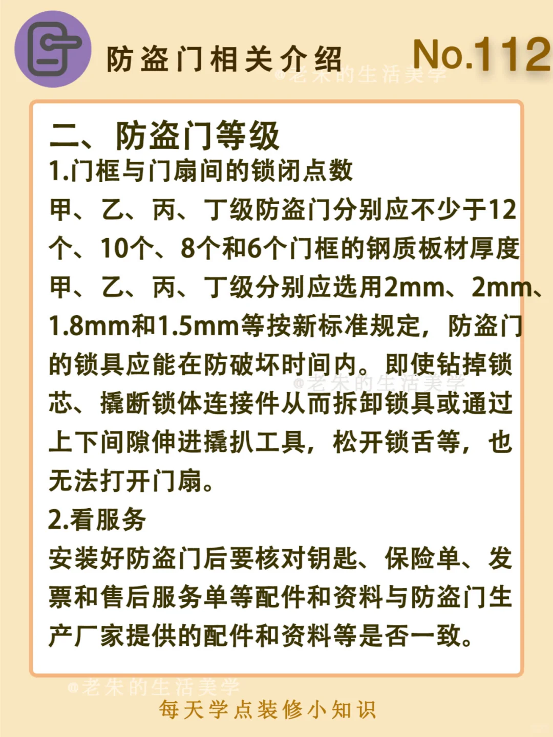🔆 一、防盗门按材质分类 二、防盗门等级 🔆 我是老朱 📍坐标天津 前上市公司金牌工长🏅 30年施工经验🛠 承接天津新房装修/老房改造 精心整理关于设计&施工&装修的攻略📝 关注我每日更新🗓 也可以在评论区留下您宝贵的想法与建议💓 让您装修不走弯路✅