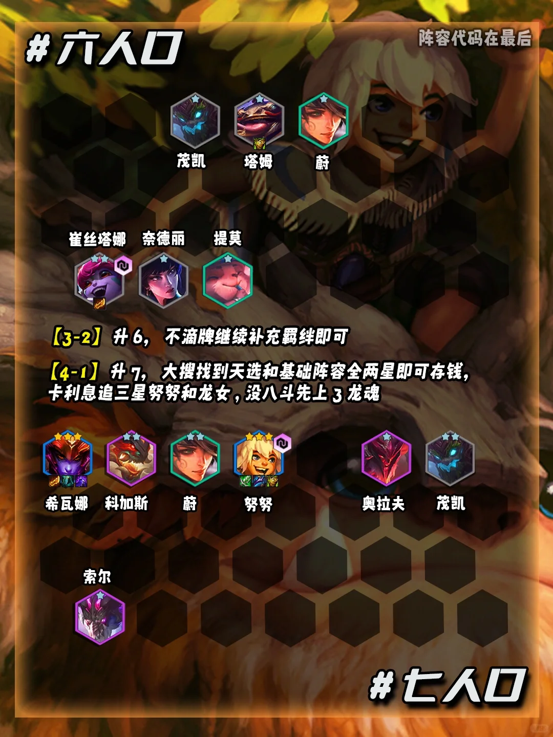 3-5选秀回来我们直接拉7D搜出我们的努努天选和阵容体系的其他棋子
