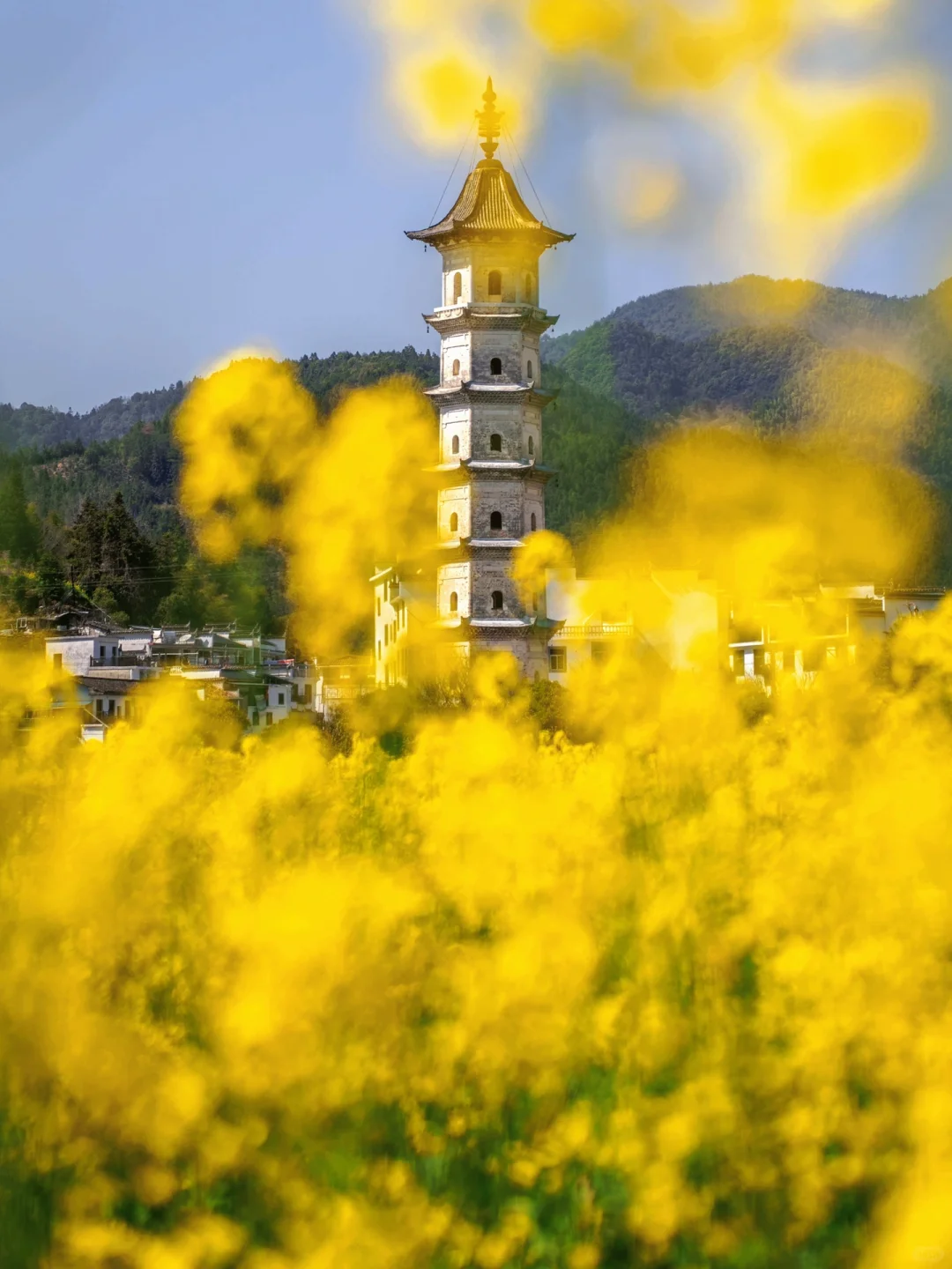 ❶凤山村:来金庸先生的祖居地~这里的百年古塔配上成片的油菜花,怎么拍都好好看~