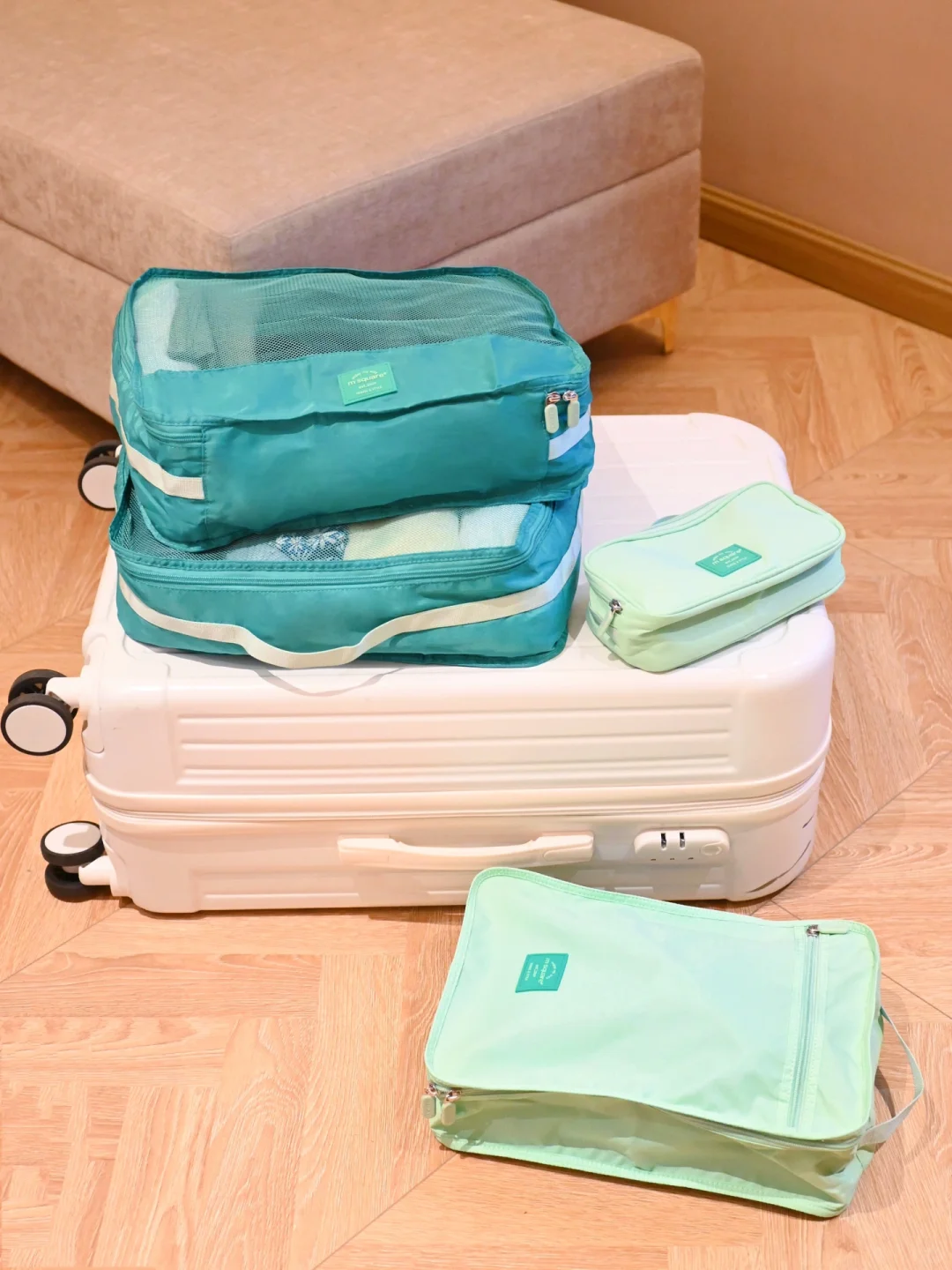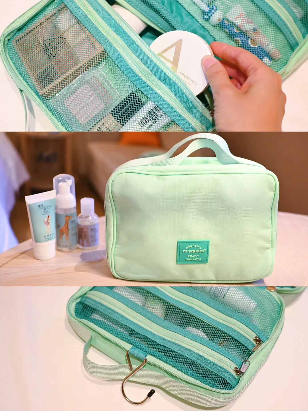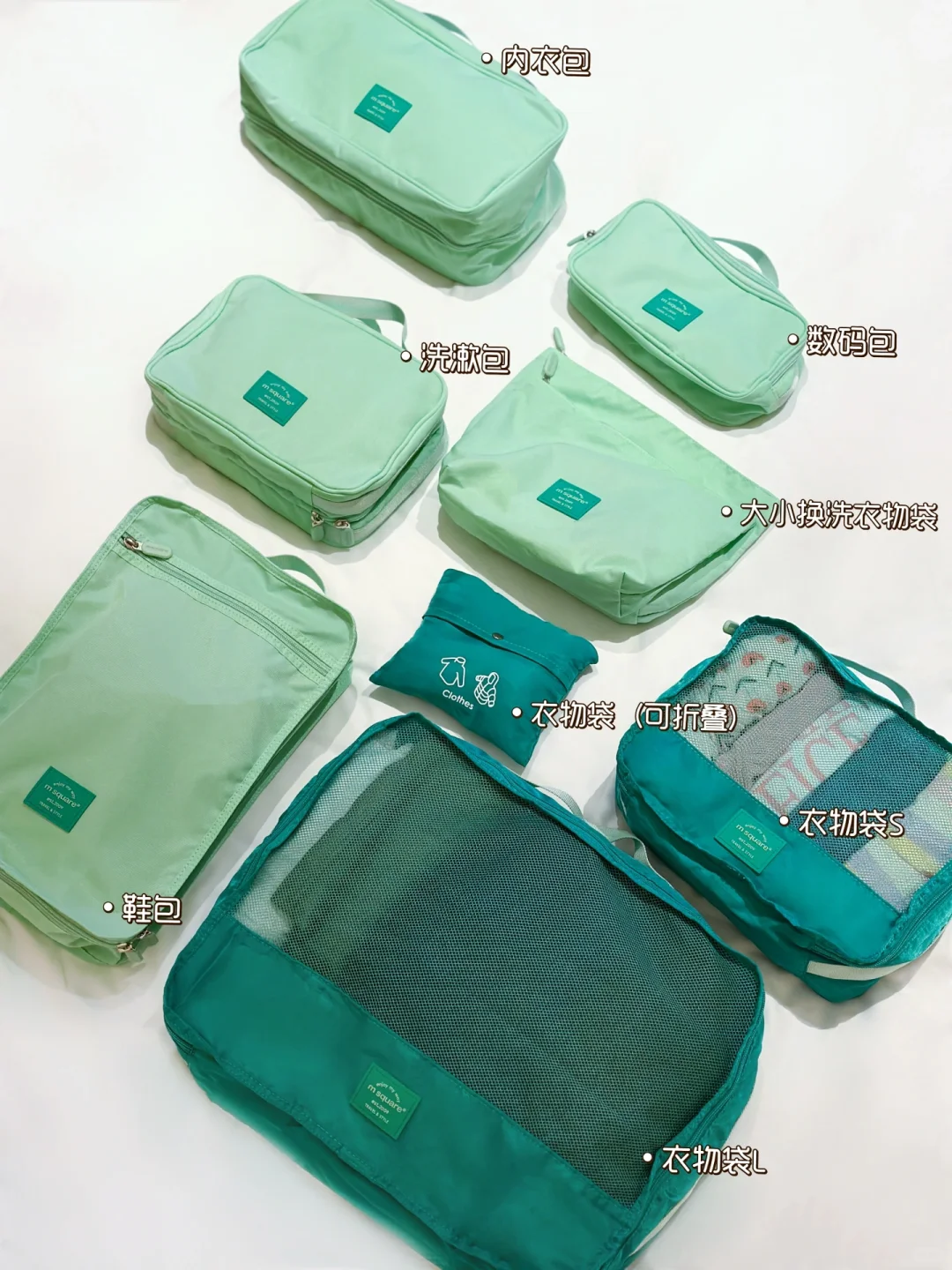 告别杂乱,旅行收纳套装尊嘟很有必要。msquare的7件套装轻轻松松帮我搞定啦!让大人和宝宝的衣物清晰分区,还🈶️鞋子、贴身衣物包、洗漱包、数码包,两个非常实用的拉链包用来放脏衣物。合理收纳,方便随时拿取😉尼龙材质很有质感,而且防水防脏💦我喜欢清新的薄荷绿,春夏外出旅游很🈴️适。大大提升出行幸福感啊~