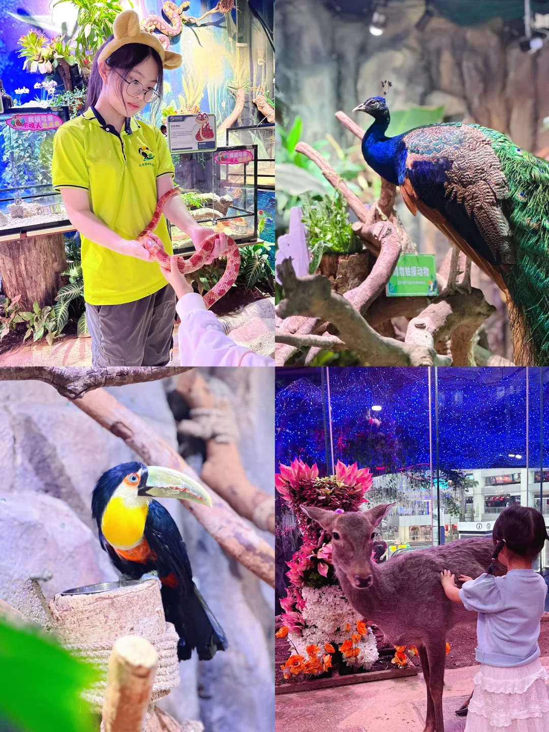 ✔️有8⃣️大主题展区,800多种动植物🌵 这里还可以和小动物0⃣️距离贴贴,简直赢麻了~呆萌二趾树懒、红胸巨嘴鸟、“干脆面”小浣熊、羊驼、梅花鹿、小香猪…小动物都很亲人,一点不怕生!孩子们尽情享受喂食的乐趣
