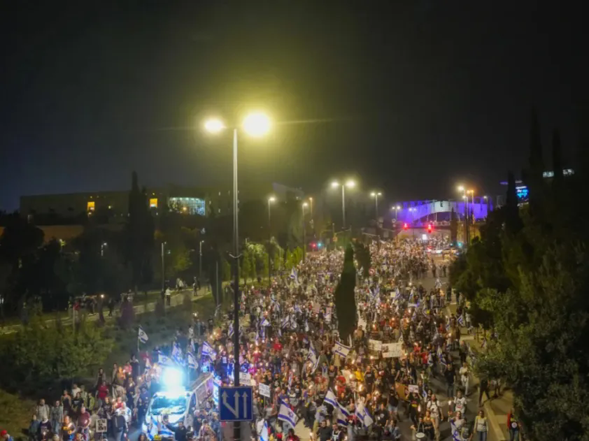 以色列突发大事件,内塔尼亚胡住宅被包围! 据报道,4月3日晚上,大批游行示威者包围了,以色列总理——内塔尼亚胡位于耶路撒冷的私人住宅,他们呼吁总理内塔尼亚胡下台,提前举行议会选举。数百名示威者试图冲破住宅附近的路障,但被警方拦截,并用高压水枪驱散抗议者。