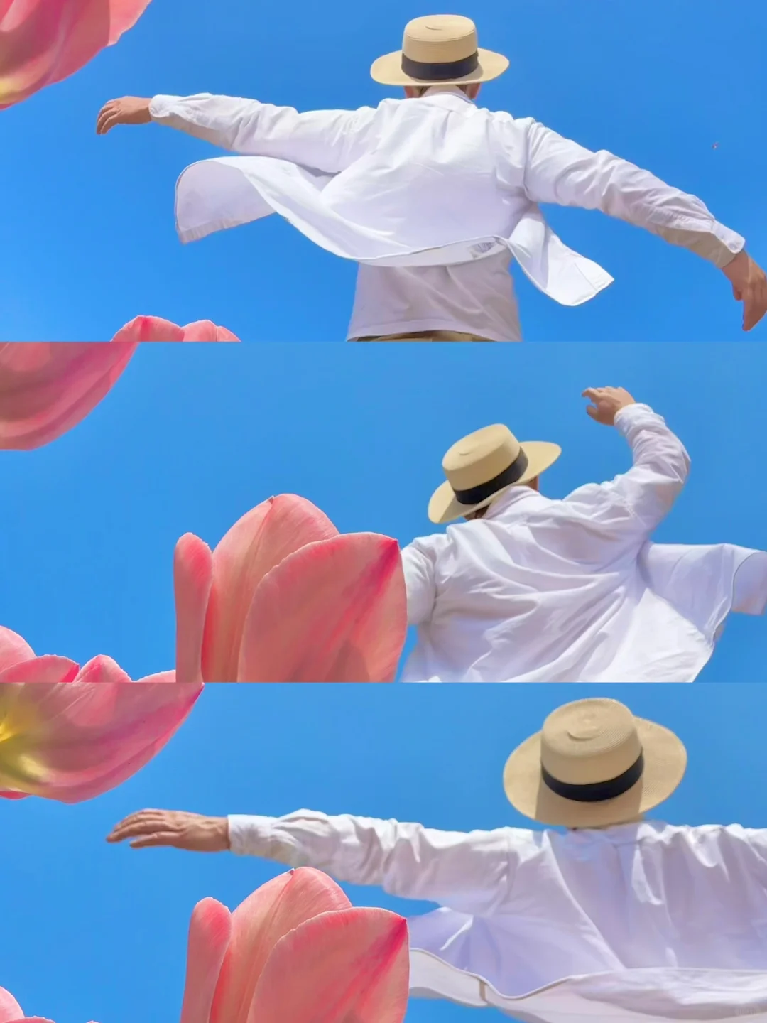 ▪️图8-9:将手机倾斜30度放置或平放在花丛中间,调整手机位置,保证画面中间有留白打开前置自拍模式,选择倒计时3s拍摄拍摄时背对镜头往后倒并摆几种姿势~