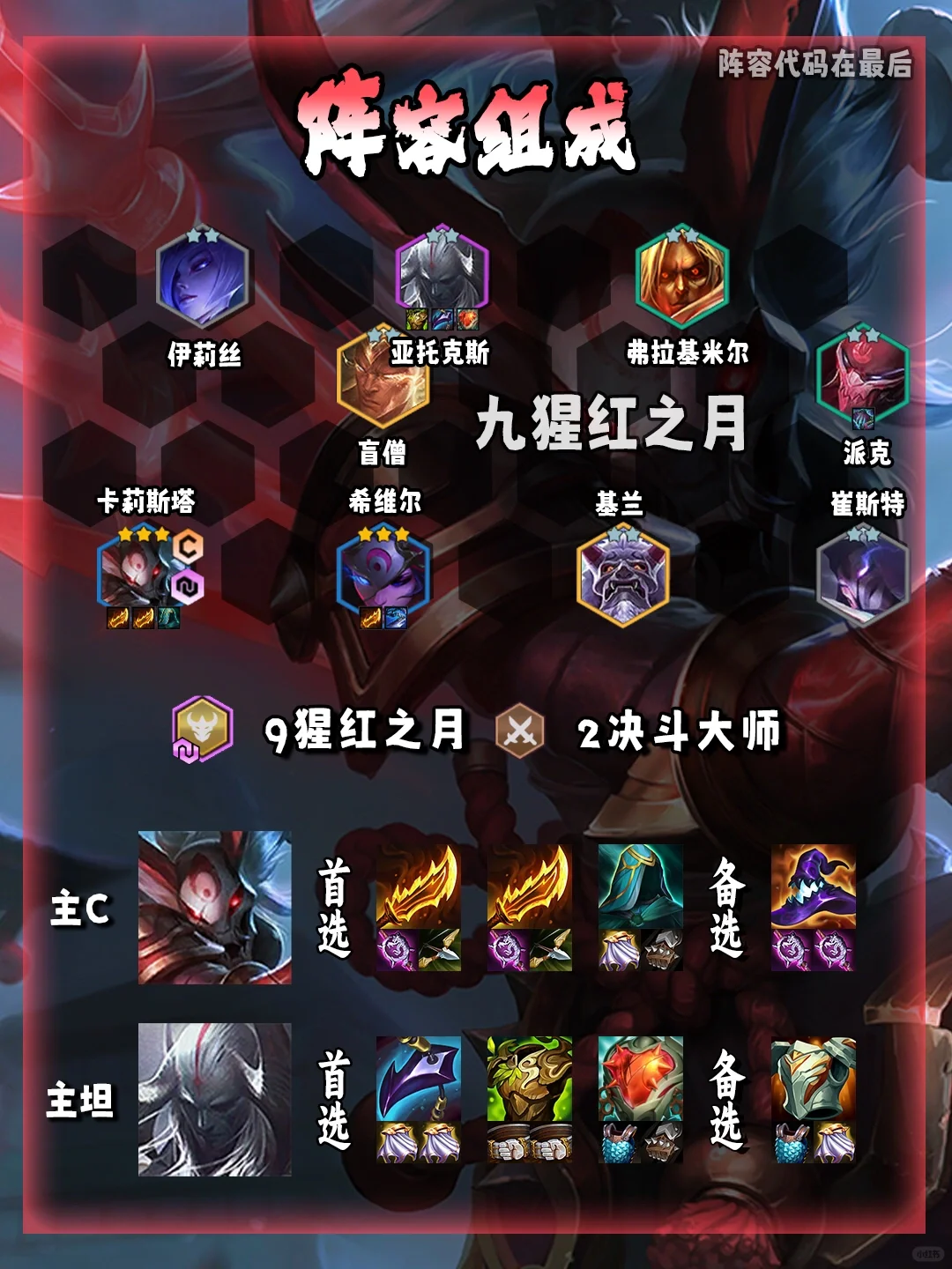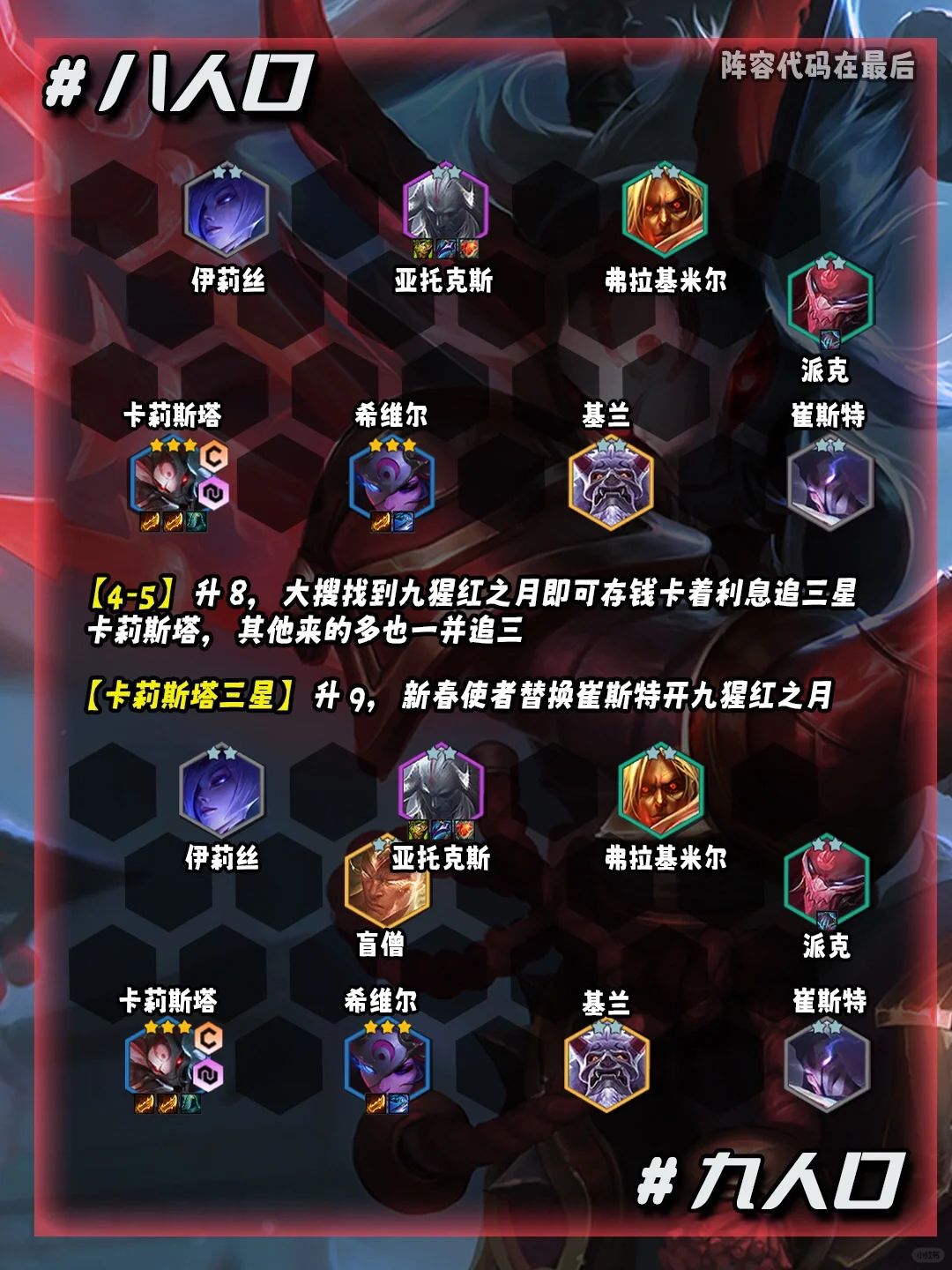 可以依靠前期连胜的经济以及血量上九开出九猩红之月👈