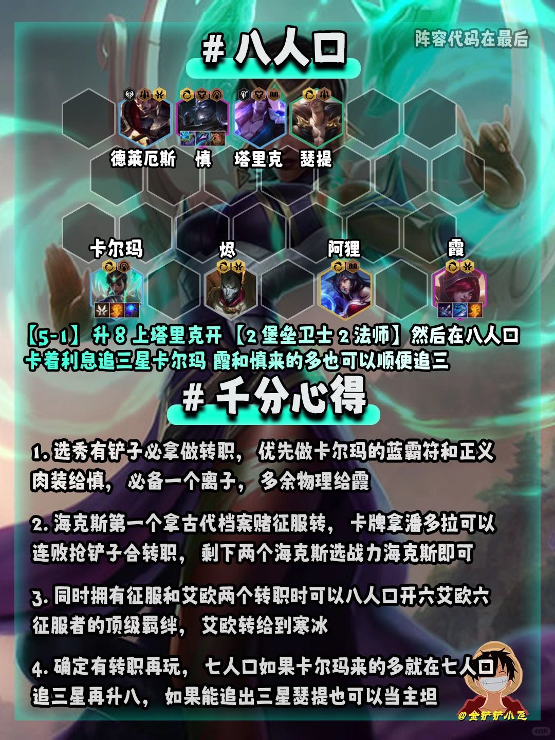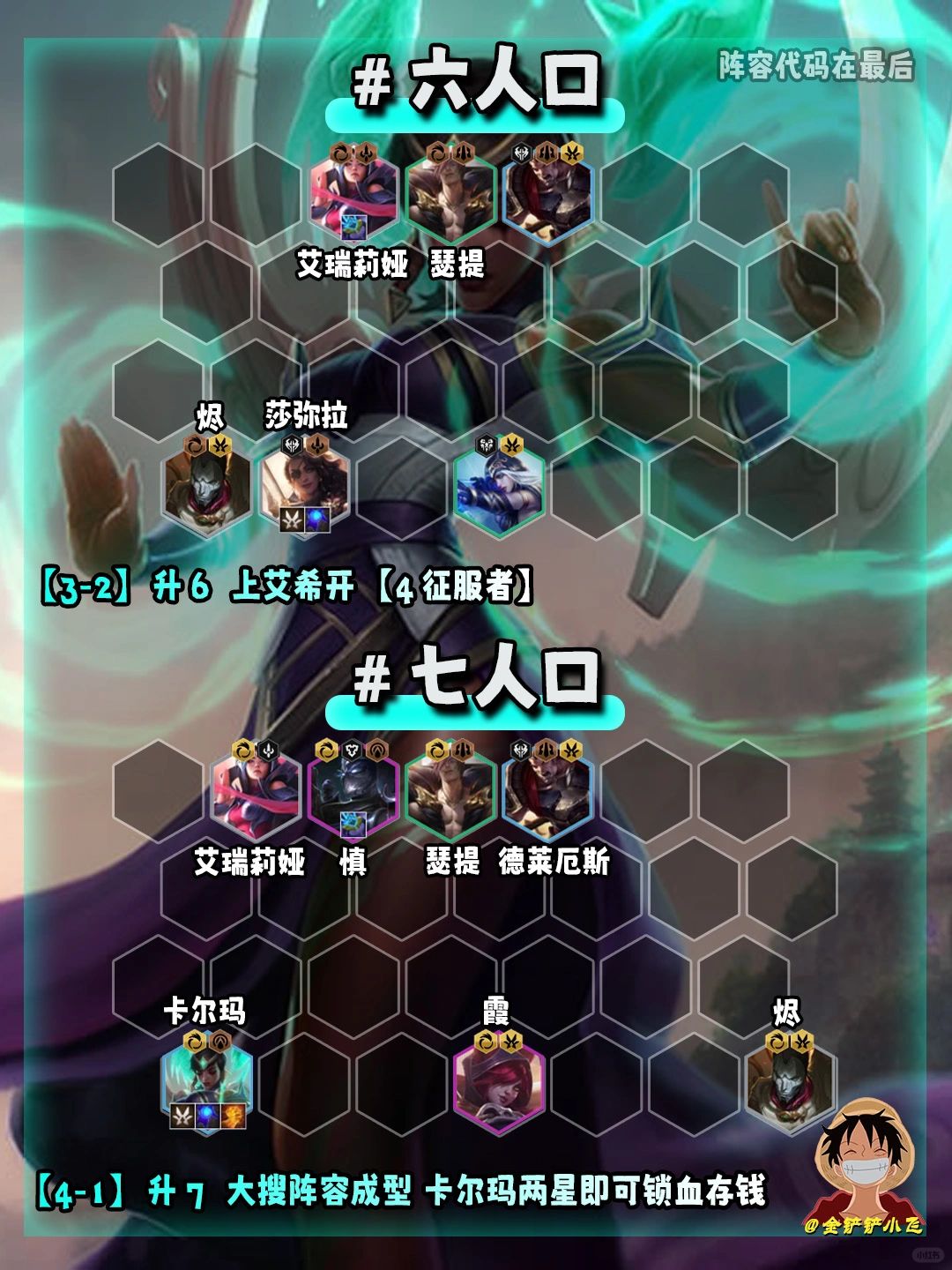 2⃣如果经济不够拉八也可七人口搜三星卡尔玛,瑟提如果能三星可以当主坦带肉装