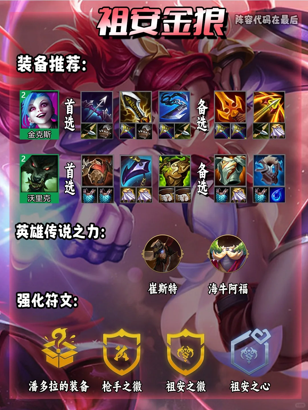 祖安金狼,开局胡金克丝和狼人直接冲!改件是机械手臂和微光注射器直接无脑吃!两费卡照样吊打五费!!!