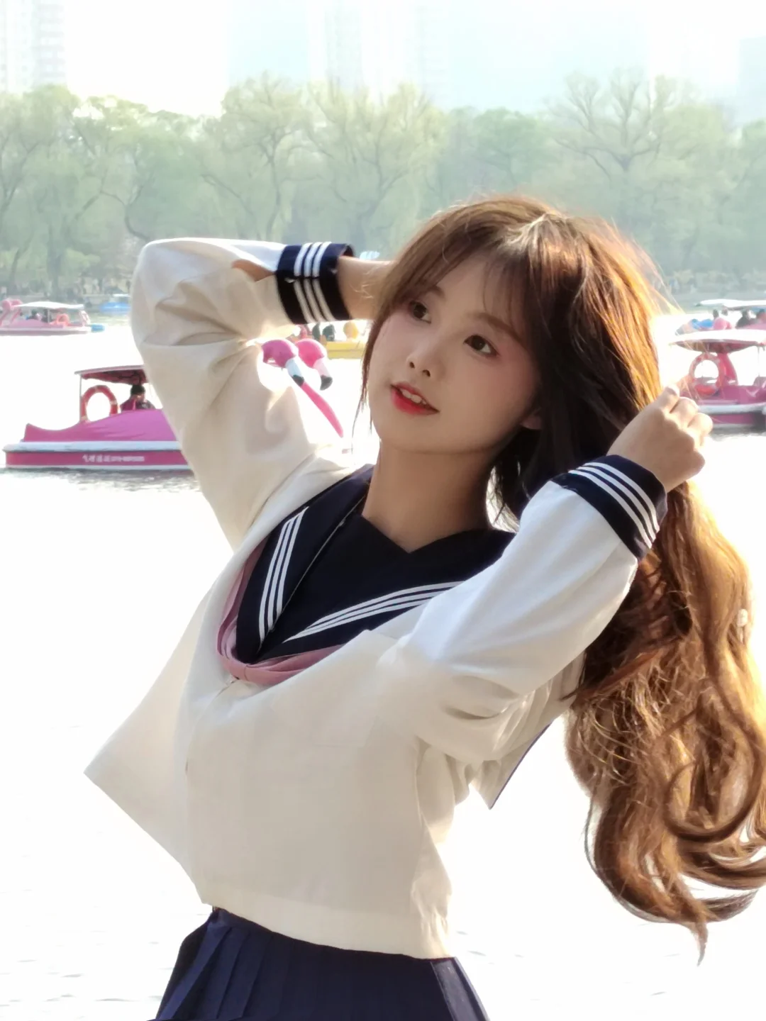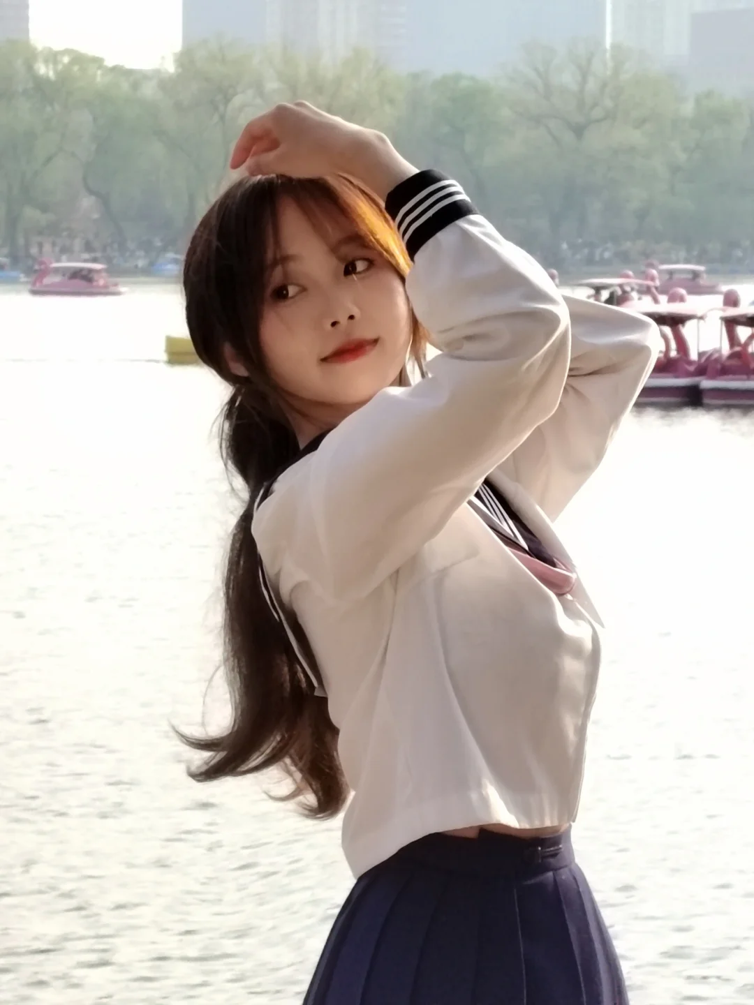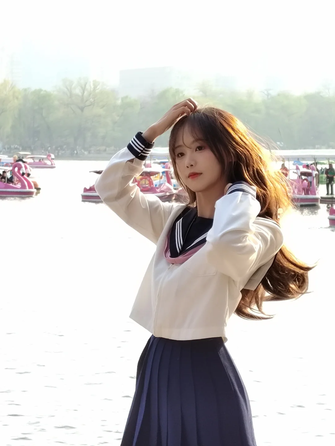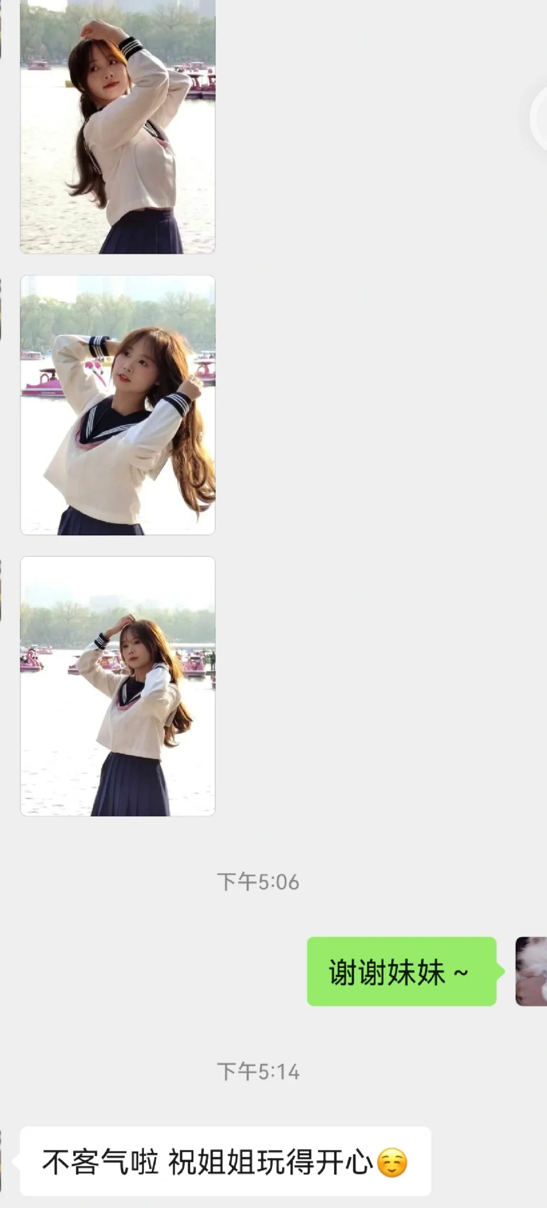 和摄影一起在玉渊潭湖边拍照,全程看着摄影 拍完旁边有个妹妹很礼貌的走过来,和我说她用手机给我拍了一些,给我看了一下,问我不介意的话能不能保存 我说不介意,并且很喜欢,就和她互加了微信,让她把照片发我 其实拍照的时候我也看到她在拍,但以为拍的是我身后的风景,没想到她捕捉的是我,镜头里的我很真实,有笑得很开心的,也有温柔的,冷酷的 她看起来非常文静,穿着浅色衣服,没想到最后会主动来和我搭话,我感到她善意的释放,觉得很温暖,就像波光粼粼的湖面和春日的暖阳
