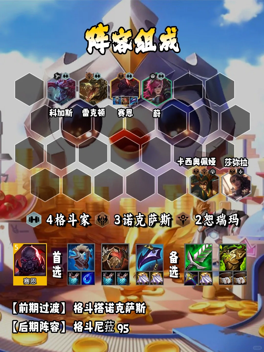 ✨整体思路✨ 开局拉等级打连胜,5级后开始存钱卡着五十块拉等级,海克斯拿经济和D牌类的,谁先上九谁就掌握追三星五费的主动权,并且一定要注意外面,卡住两张他就没办法三星!