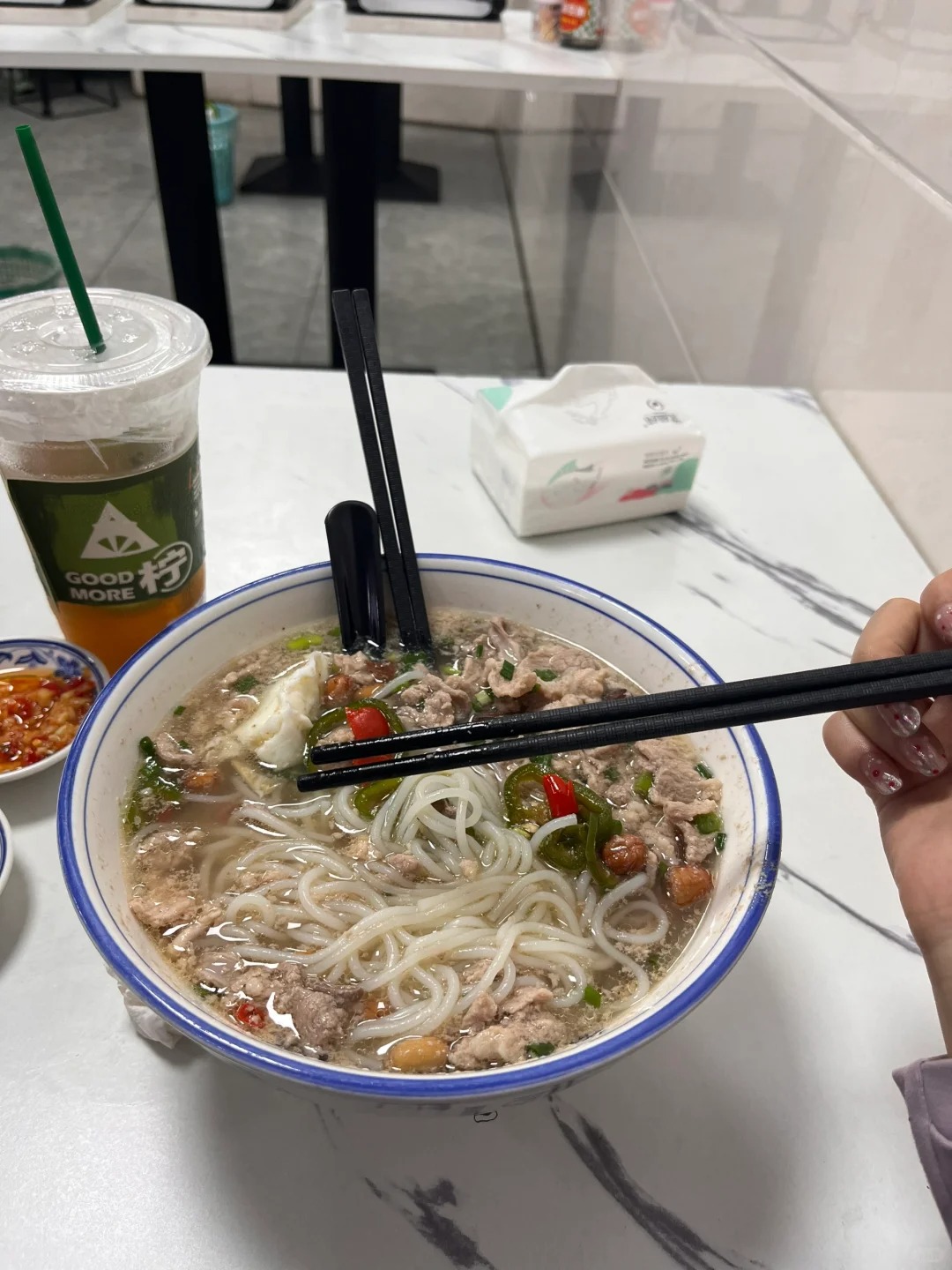 吃了半天发现不太对劲…… 我这碗里不是有筷子吗…… 而且吃着吃着店里的凳子都上