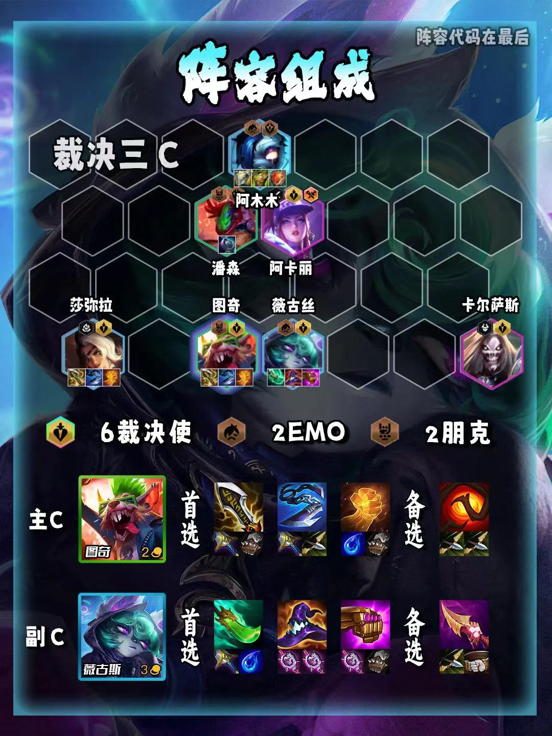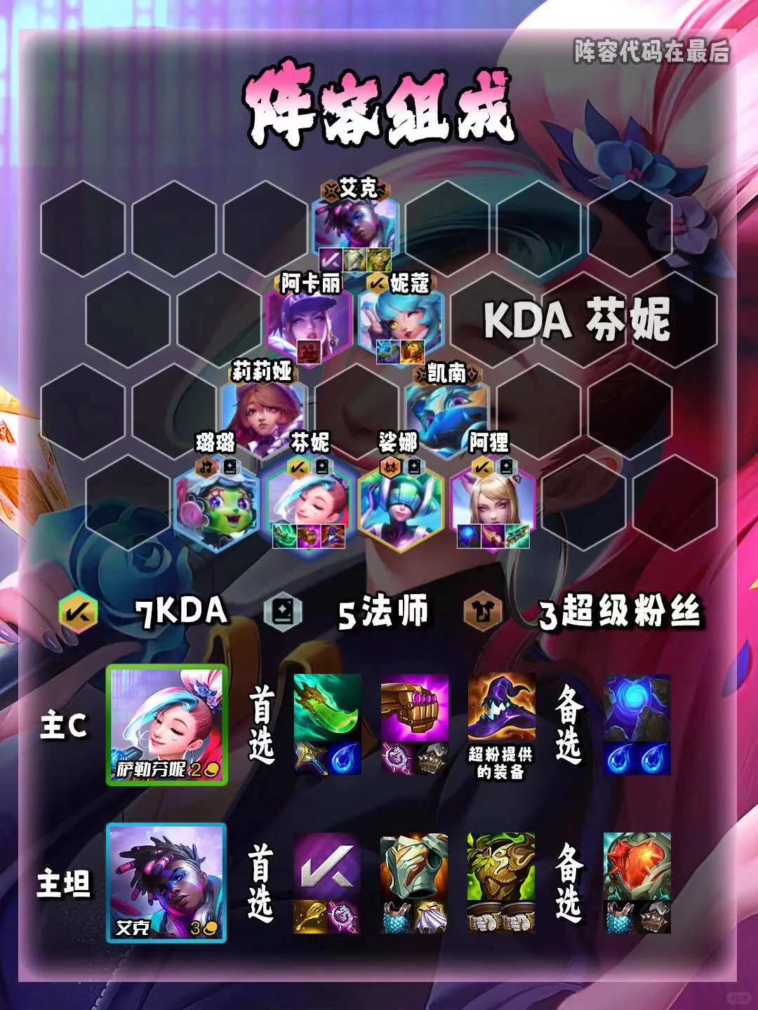 1⃣️芬妮不仅能奶队友还有输出🤩 2⃣️天使真的每个版本都在c😭 3⃣️当之无愧的强势阵容 上限超高👊 4⃣️五杀唱跳成型难度简单上限还高😤 5⃣️简单易上手的赌低费阵容!图奇加薇古丝一个技能就能秒掉对方前排💪