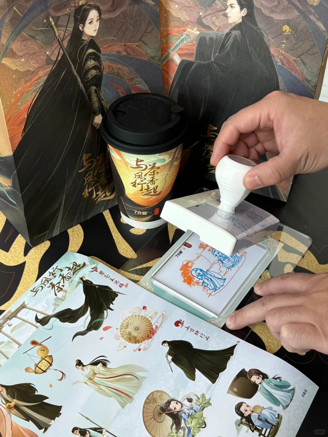 7分甜联名周边的颜值都好高,有联名纸杯、联名纸袋、联名贴纸、联名亚克力立牌以及联名透卡,都以敦煌美学为灵感的设计,拿到手里真的都好喜欢~主题门店还有印章也不能错过(图8)