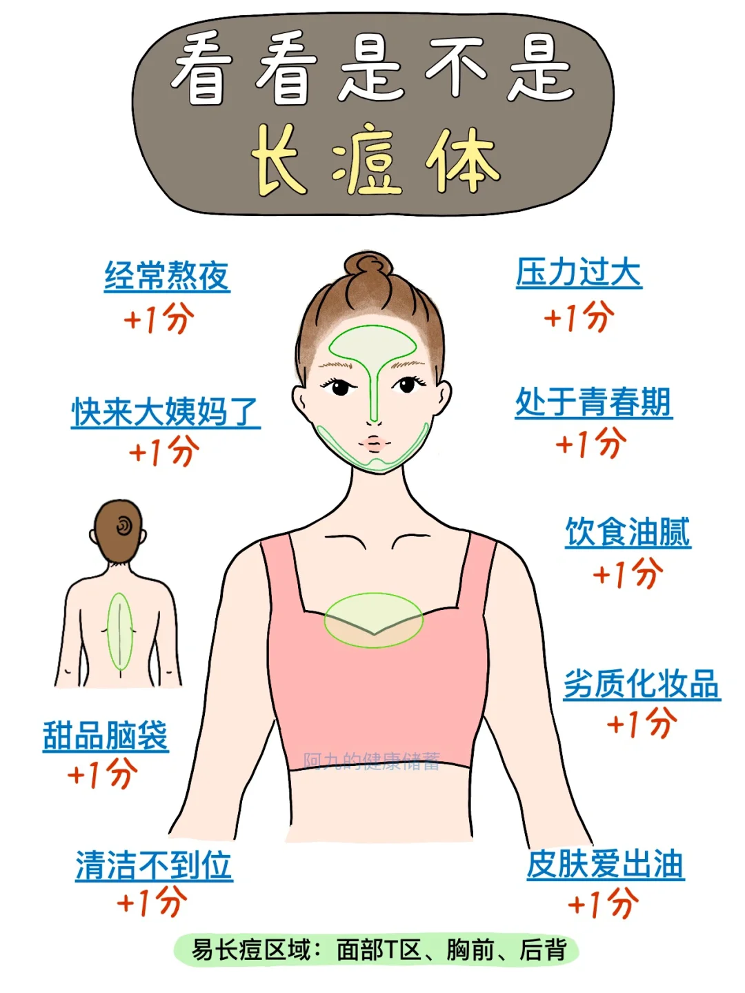 而有些人就很容易起痘,尤其是青春期、生理期前、熬夜后、胡吃海喝之后、压力大都可能会冒痘痘