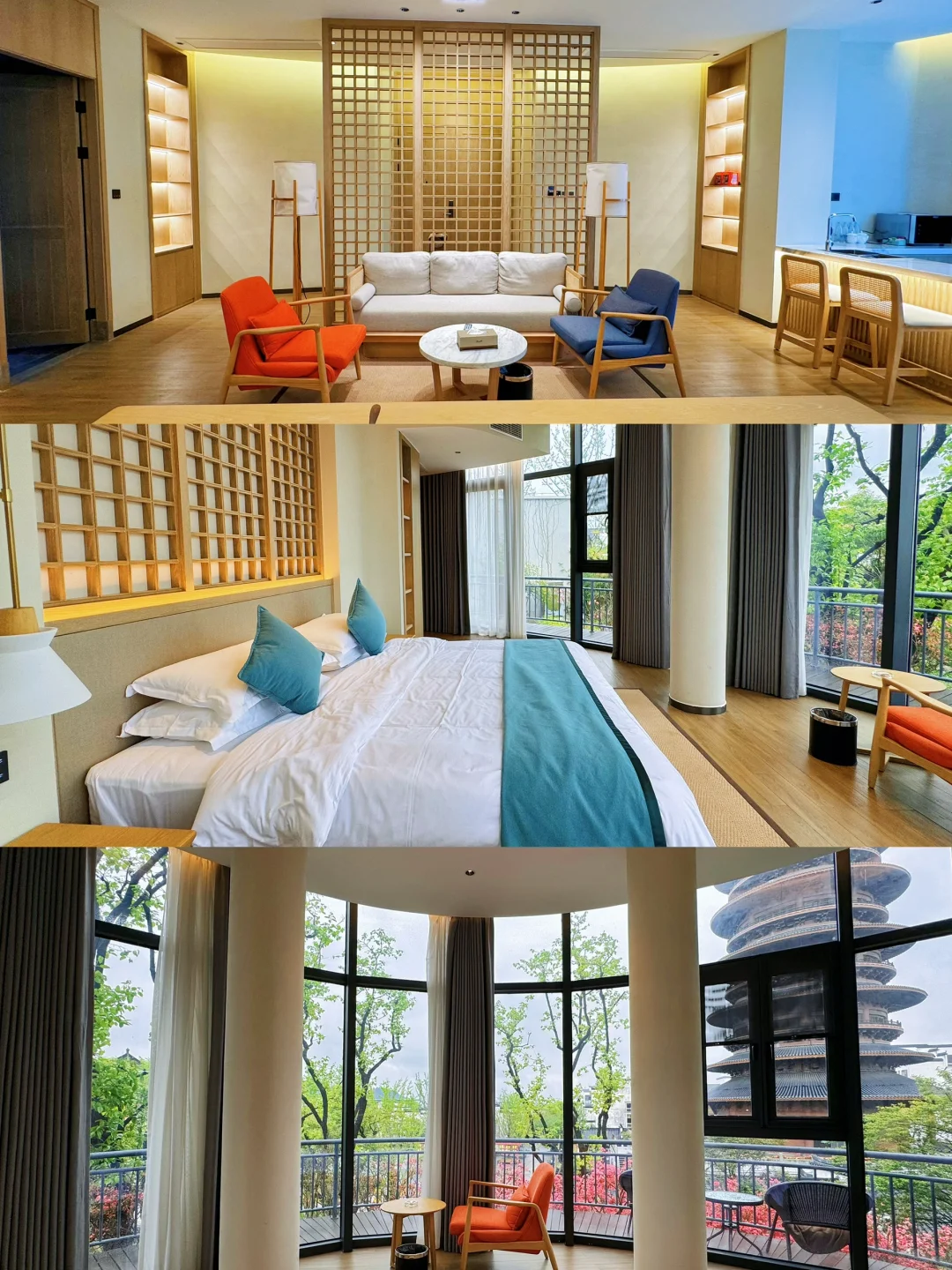 我这次入住在景区的茶圣精舍,房间刚好就在抱玉塔旁,躺床真的能看到夜幕下的塔,太享受!房间宽敞舒适,各种设施齐全,有客厅也带阳台~当然也送双人门票和实景演出门票,出入有24小时的接驳车接送…