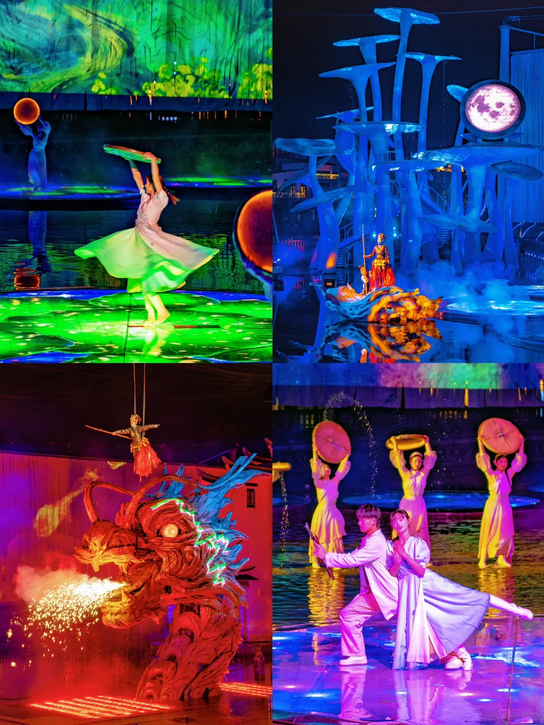 正如古人说的“醉后不知天在水 满船清梦压星河”,水幕倾泻,乘船游荡,桨声灯影中,误入天上宫阙,仿佛感受到了古人浪漫~