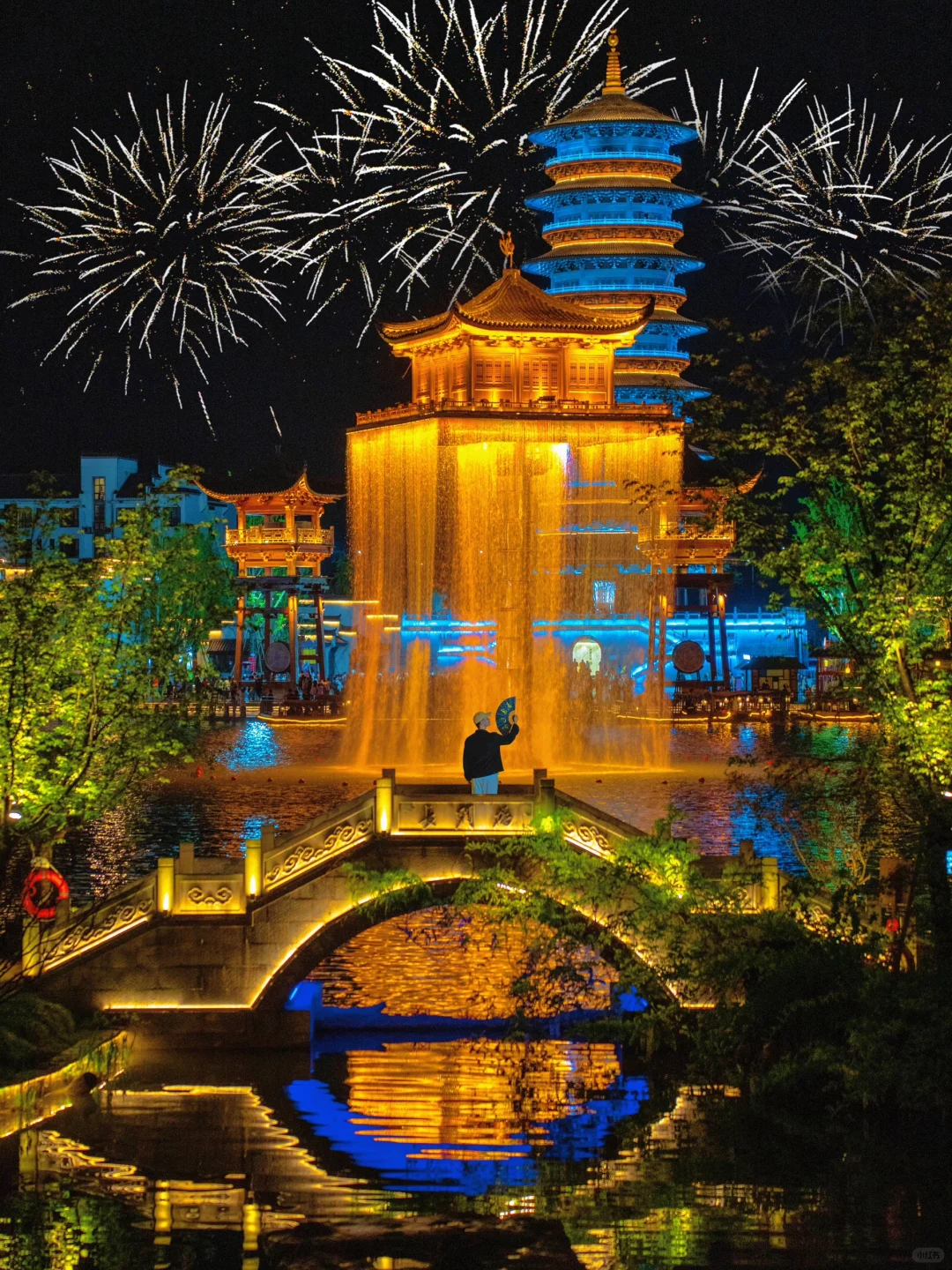 白天小桥流水真江南,夜晚金阁亮起宛如天上宫阙~