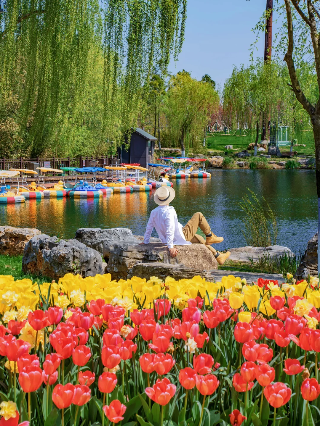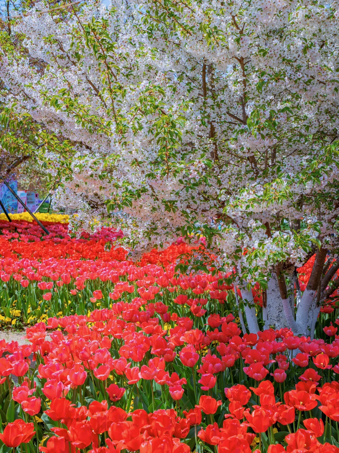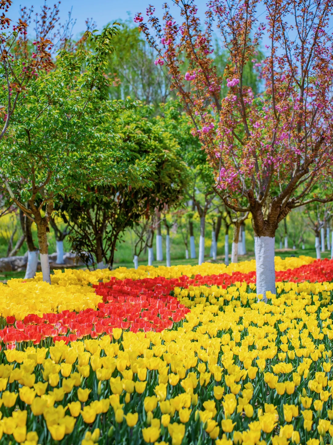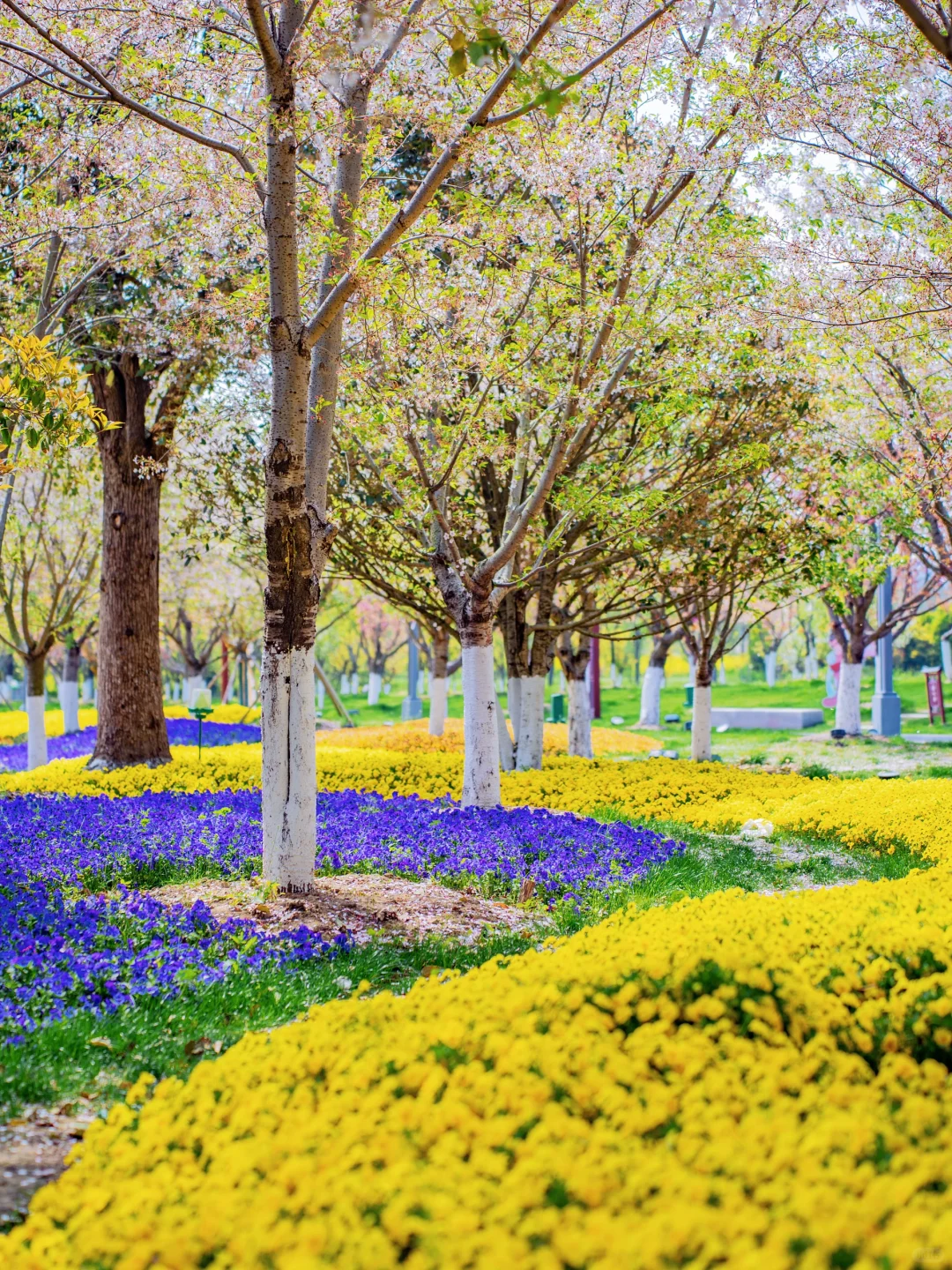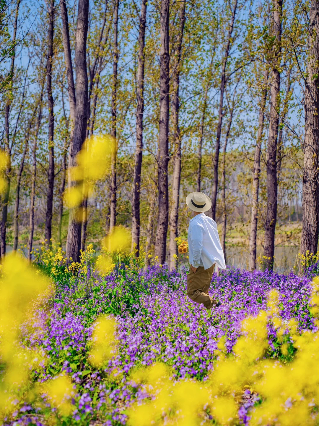 除了晚樱、梨花之外,还有大片的郁金香和二月兰、油菜花、风信子等等,真的太好拍了~