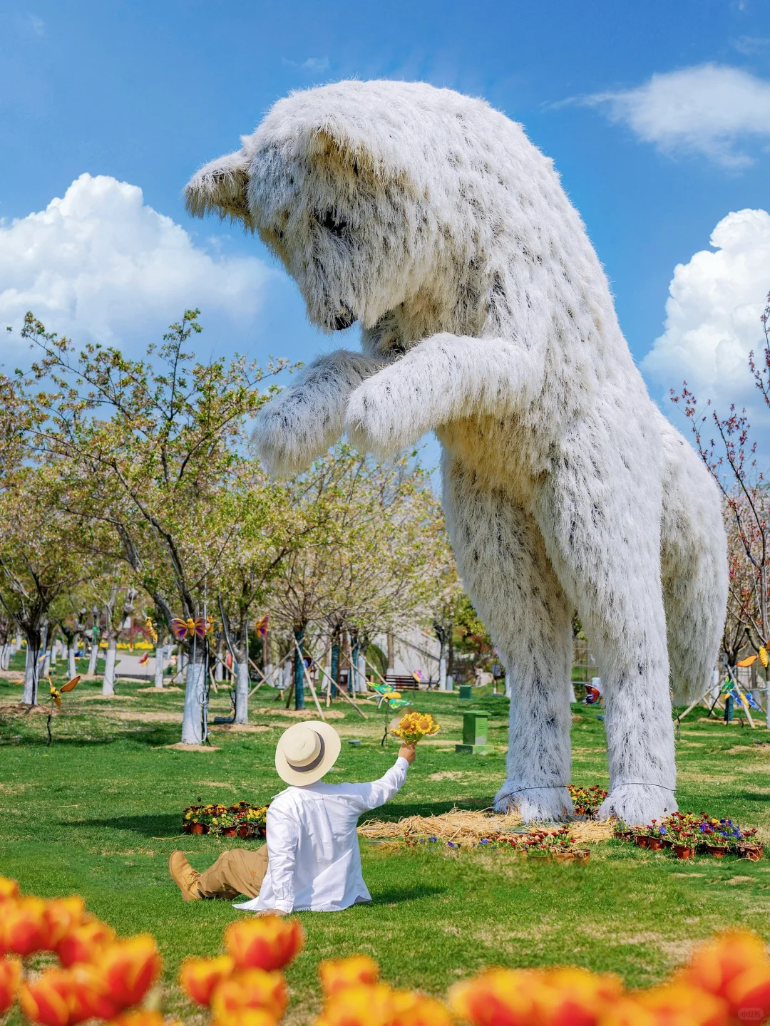 真的好喜欢这地方,有好多稻草巨型装置真的挺出片~131.4㎡悬浮花艺城堡、橘黄巨猫、龙猫花车、稻草动漫巨人、花蝴蝶…上次🔥上海的网红白狐,在这真的也能get到~
