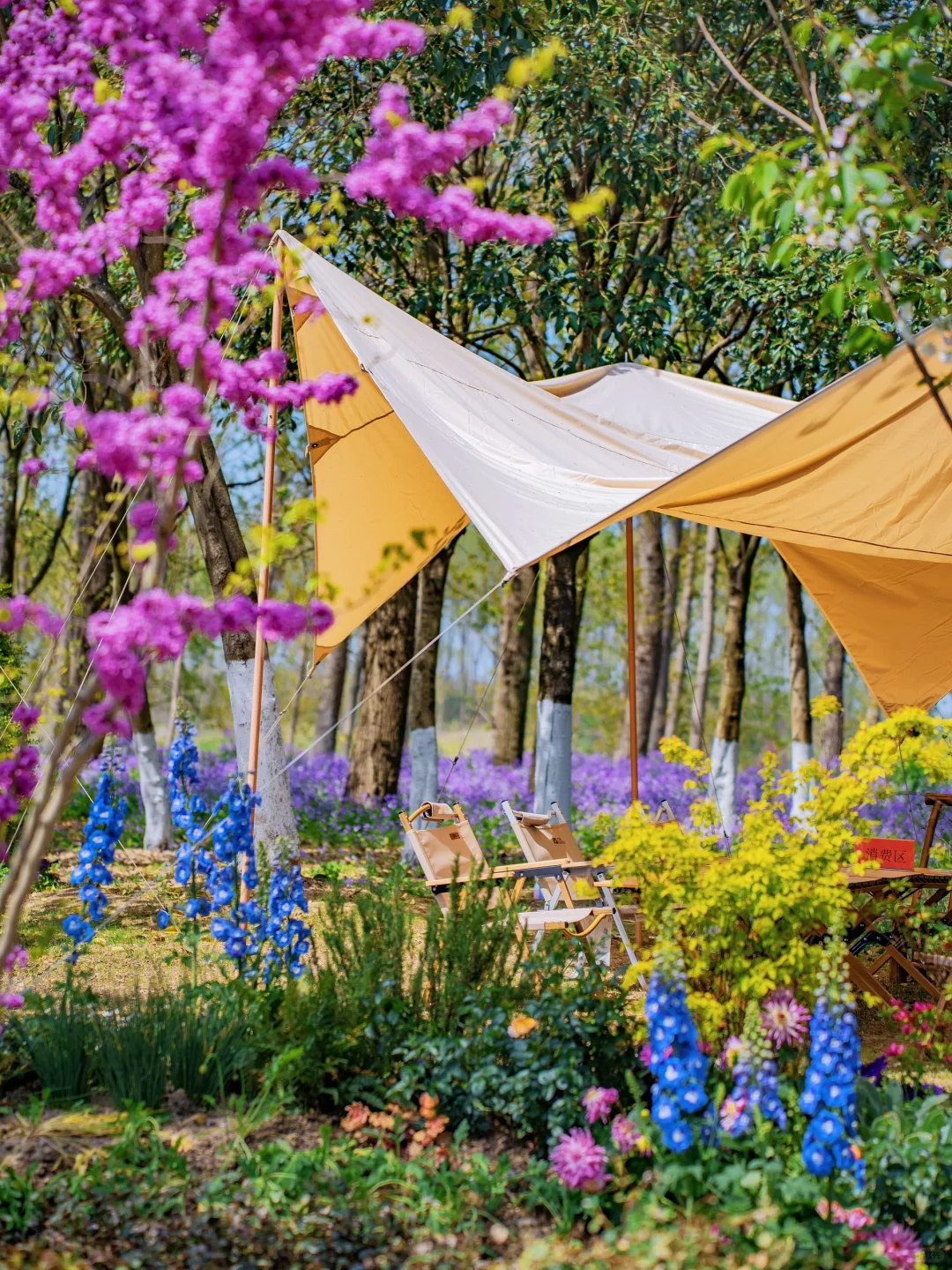 好喜欢坐在咖啡店门外的露营地,这布置得很有莫奈花园的感觉~