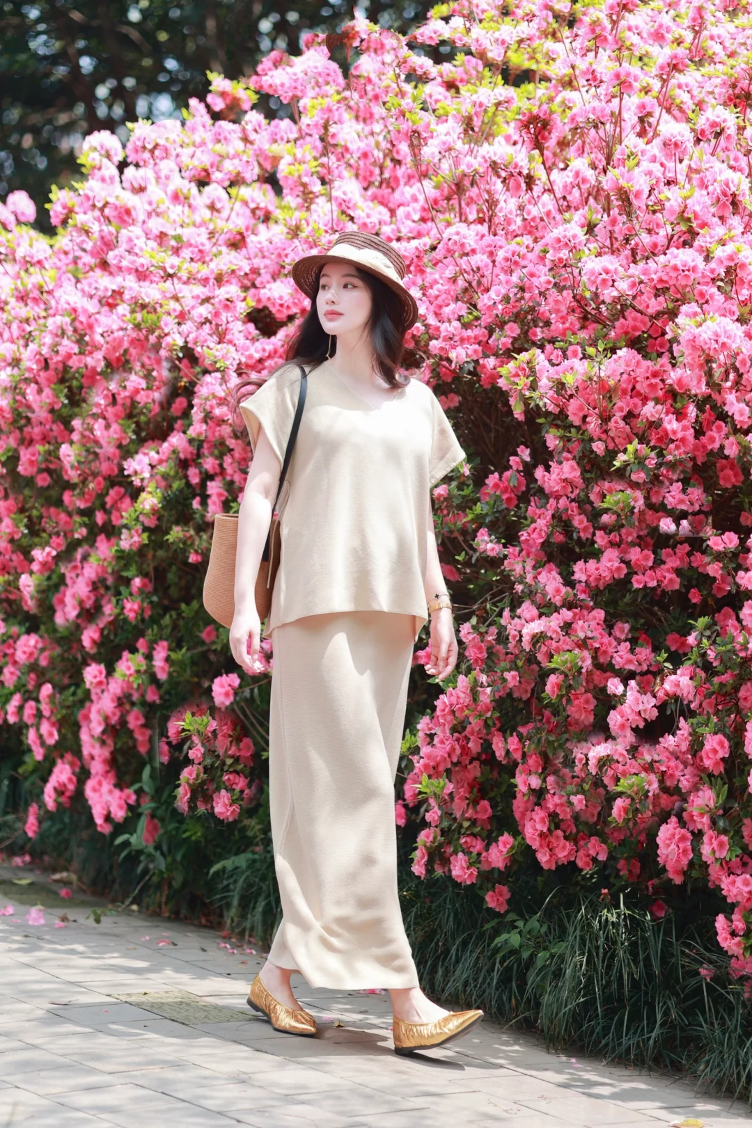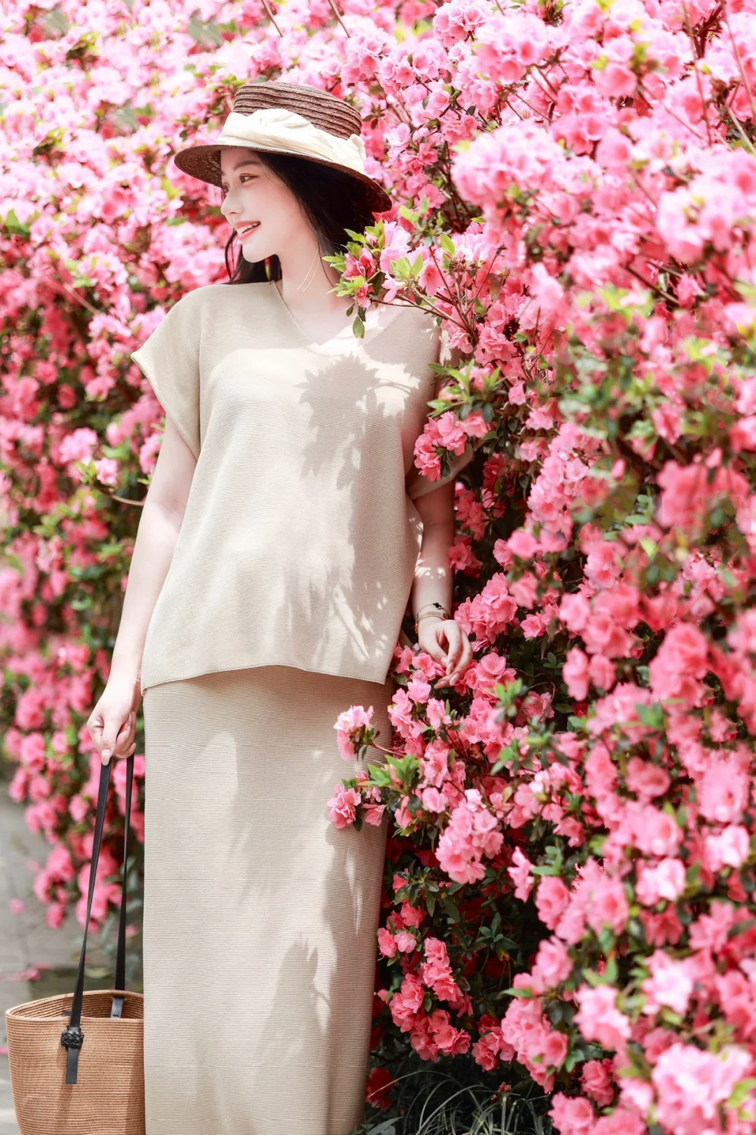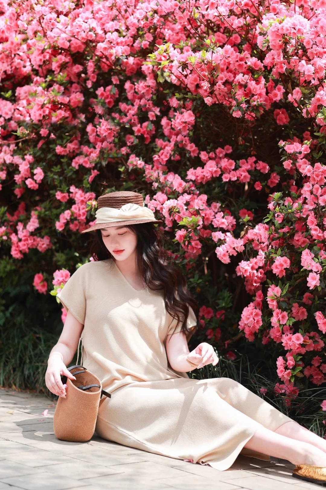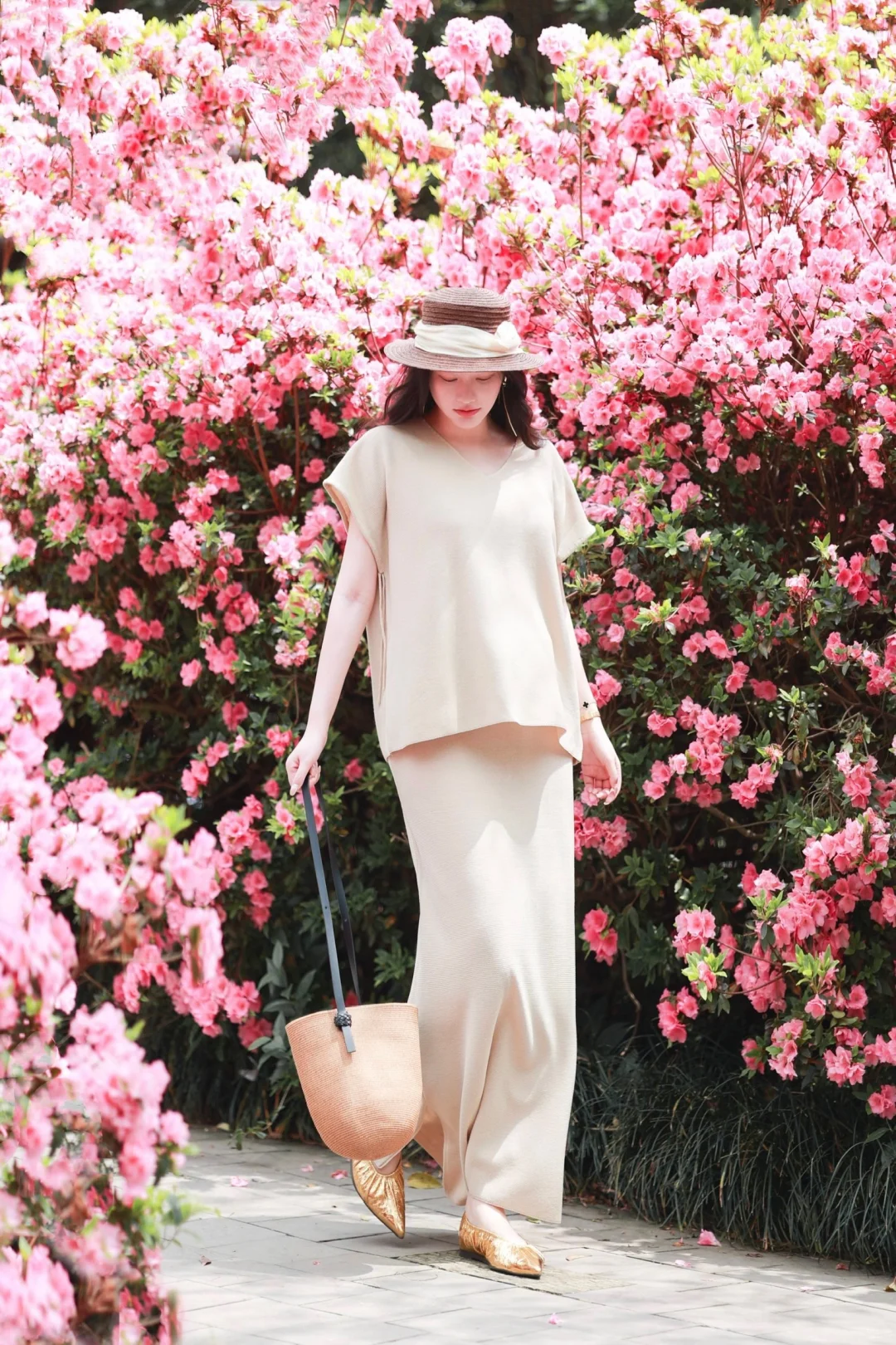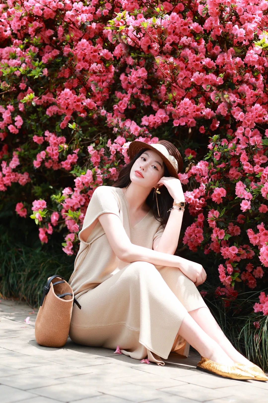 2️⃣一定要选度假感穿搭或者宽松长裙,方便走动、奔跑、坐着拍摄,比如我今天的穿搭!杏色亚麻针织好透气,极简松弛又遮肉,26周的孕肚🤰被藏得好好的,我打算五一度假出行也穿它[赞R]