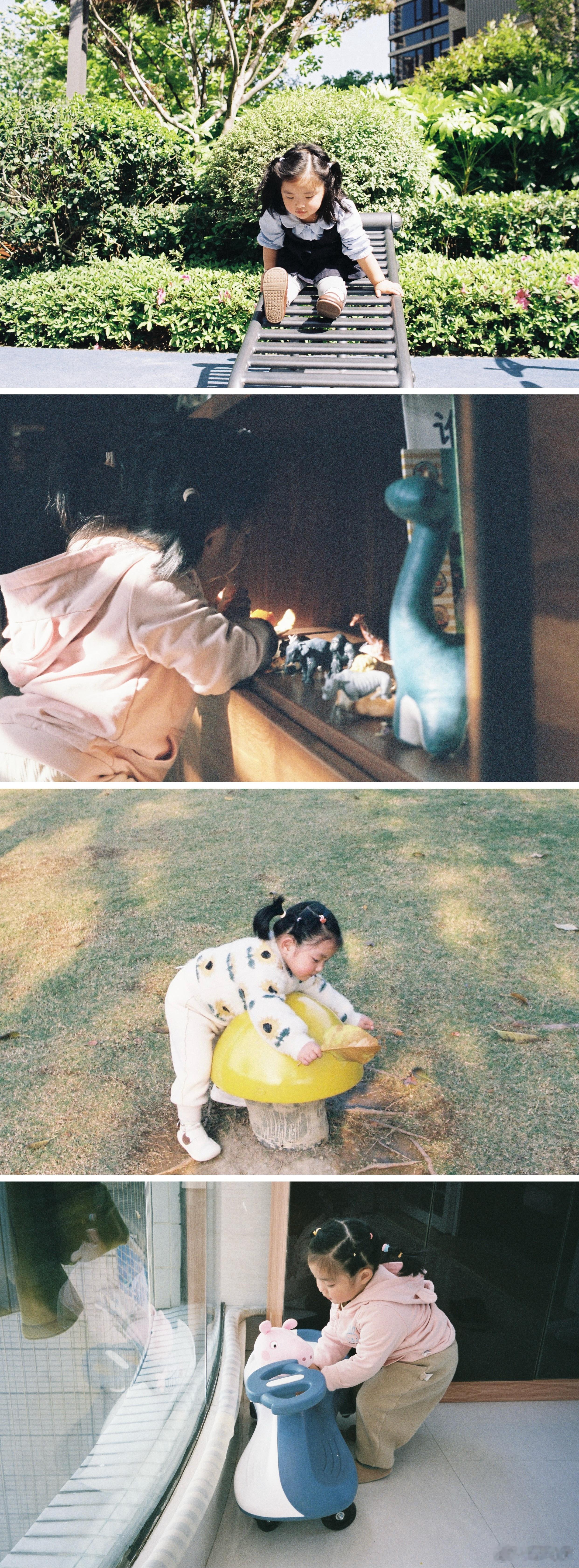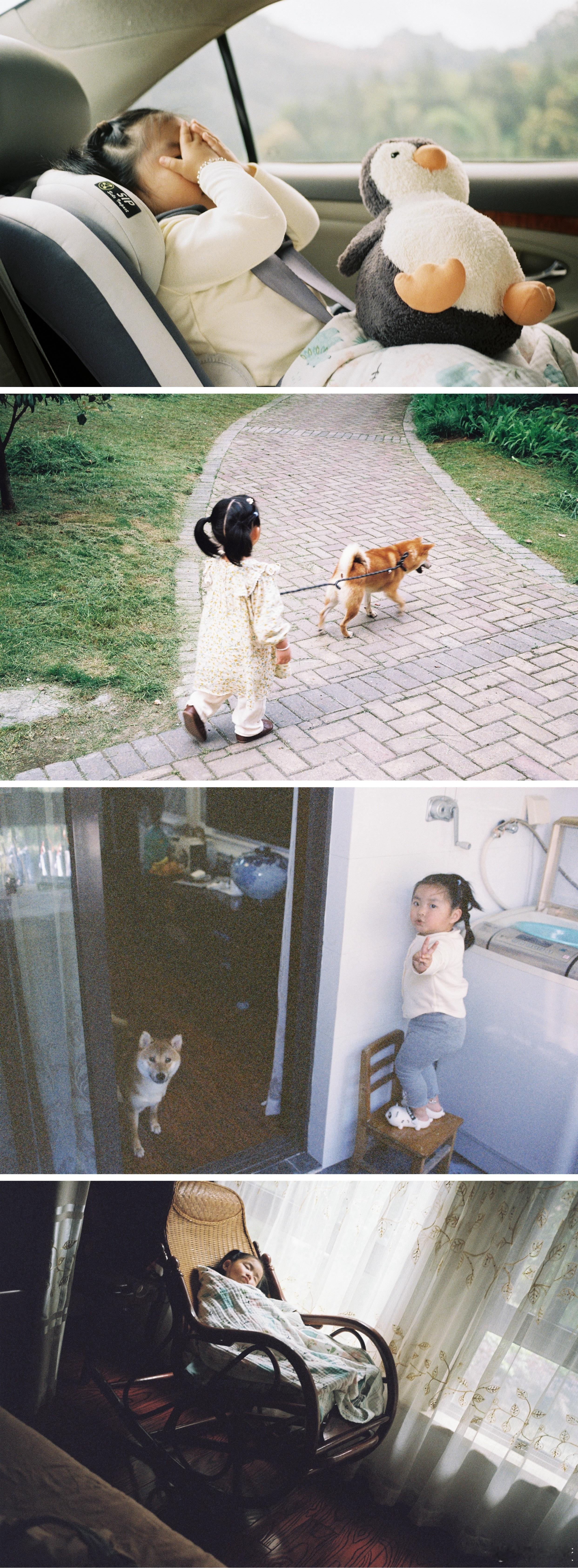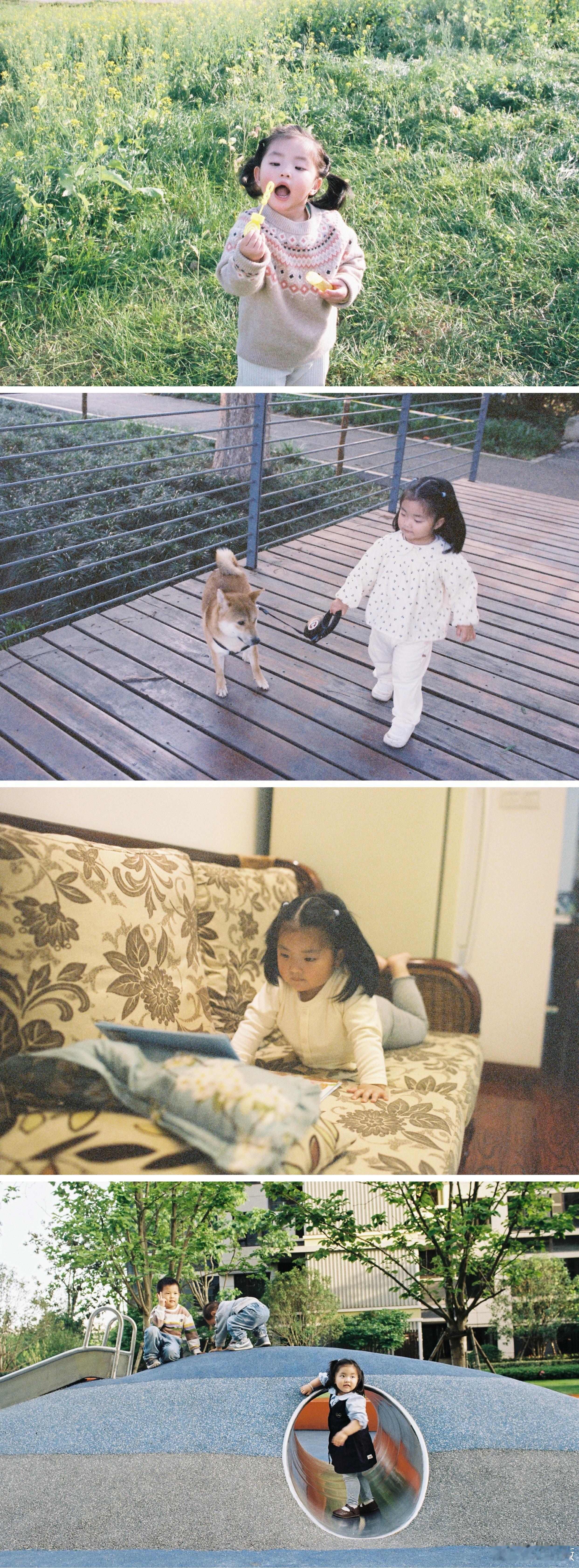 是两岁多她还没有剪蘑菇头的时期呢~记得那时候带她出了趟远门,赶上快到节假日,人山人海的高铁站好拥挤且完全没位置坐,大人们在这个环境中难免显得有点点烦躁。可女儿却因为可以坐在行李箱上面玩而感到很高兴,我看着她也觉得开心了起来,我想其实是她也在教我如何随时随地与世界快乐地相处吧。