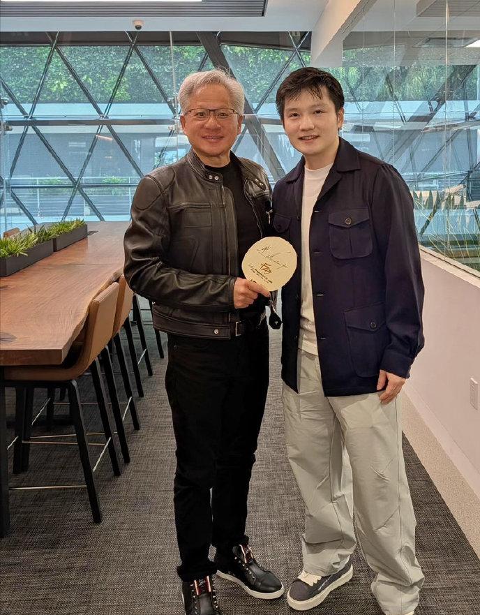 要说这趟行程最亮眼的,那必须是他跟英伟达创始人黄仁勋的见面,俩人还真就拿起球拍,现场切磋了一下。