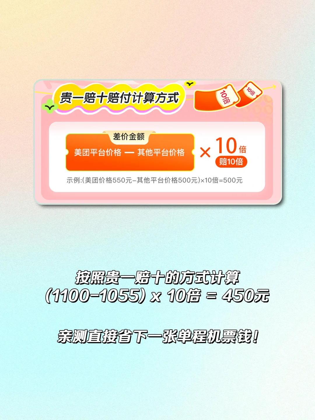 原来在【美团】买机票,买贵了是可以退差价的,而且是10倍退[生气R]这样就完全不用担心被背刺啦,稳稳的很安心[赞R]