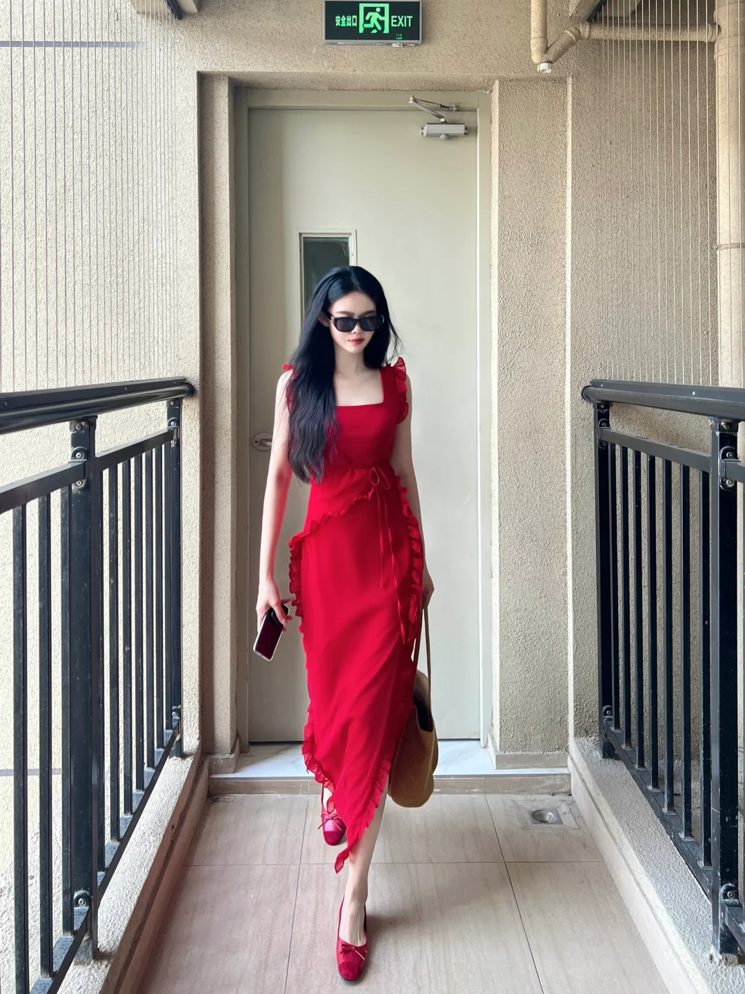许佳琪壁纸:金红色抹胸裙,尽显婀娜姿态
