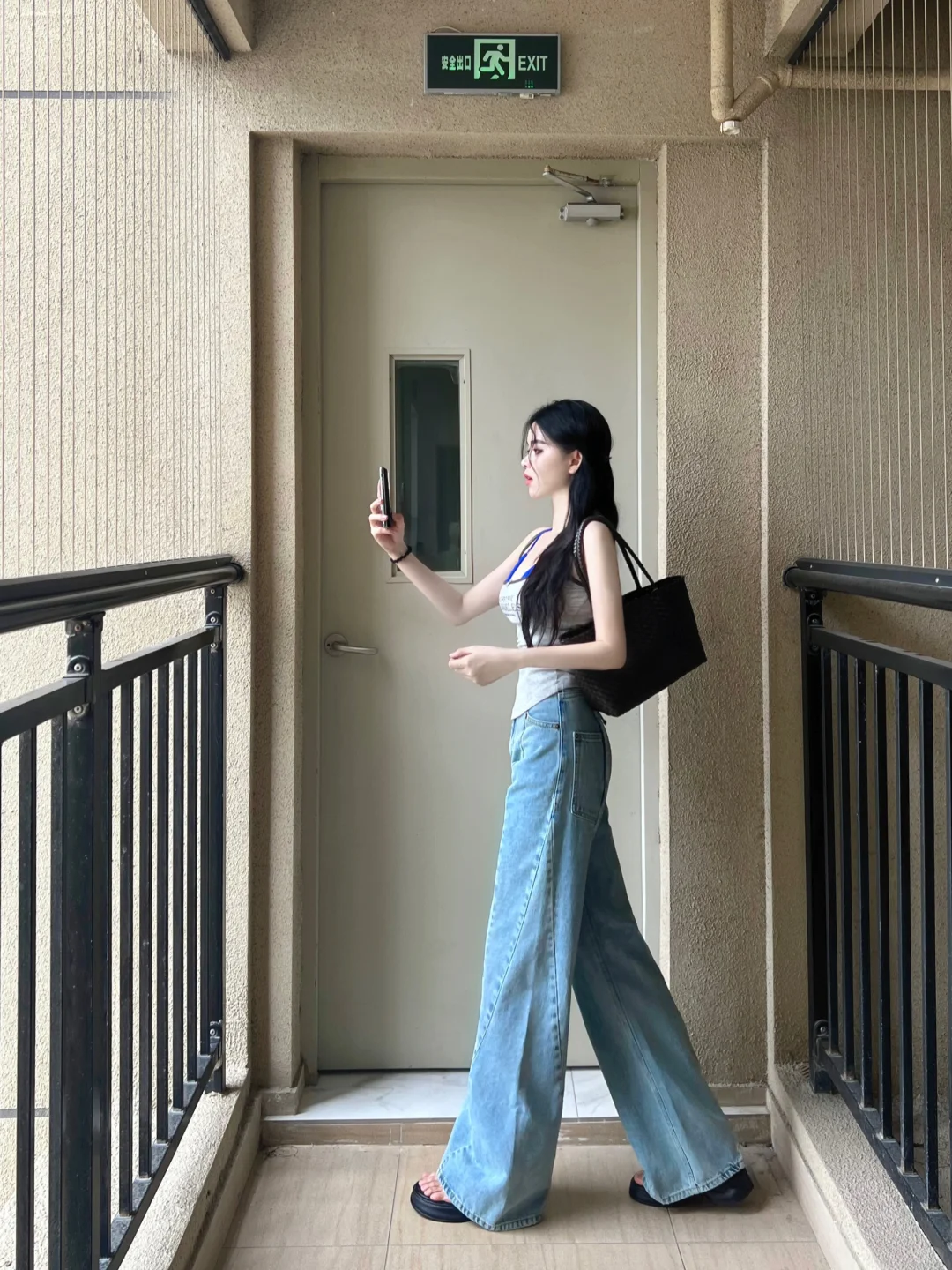 吊带穿搭 一周穿搭不重样 夏季穿搭 我的日常 牛仔裤 显身材穿搭