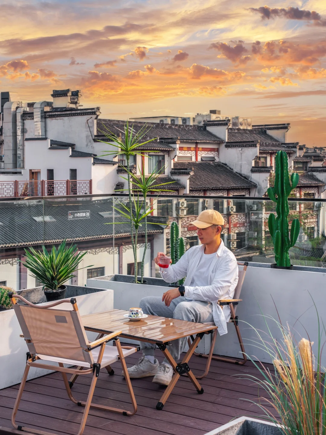 • 我们住的酒店是【無 同】,位于古秦淮街牌坊入口,房间设施与视界都超好,推窗能看到秦淮河上来来回回的画舫,下午坐在楼顶天台上喝杯咖啡看日落,华灯初上也可俯瞰夫子庙夜景~