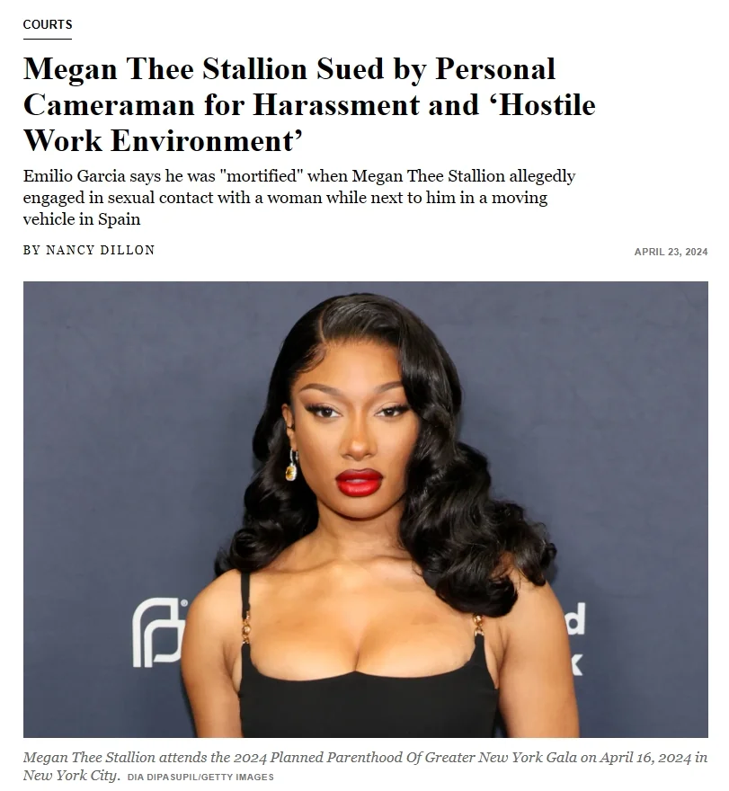 「马冬梅」Megan Thee Stallion 被私人摄像师 Emilio Garcia 起诉,Emilio在洛杉矶提交的一份控诉书中指控马冬梅曾强迫他观看她和另一位女子做❤。