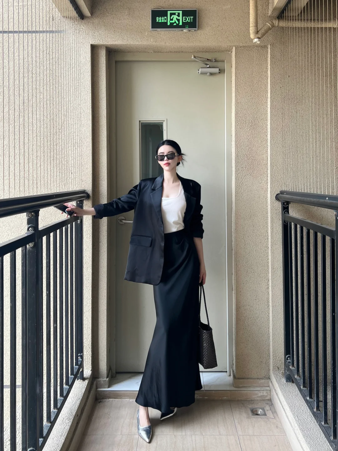 母其弥雅秋日穿搭美图:黑色优雅身材真好