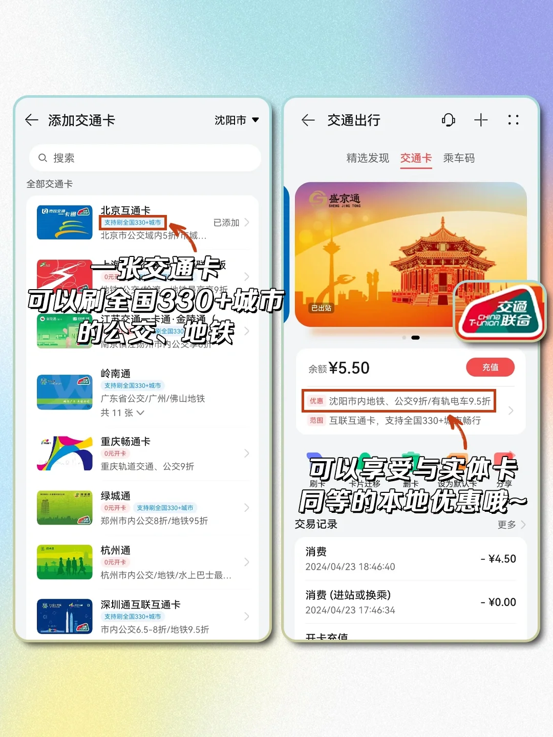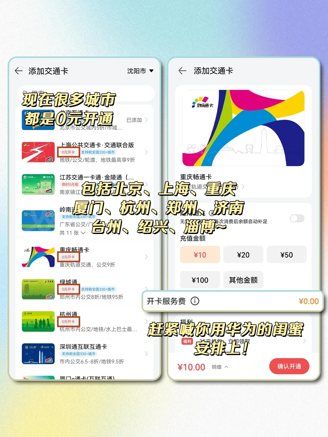 [飞机R]开卡城市在本地享受实体卡的乘车优惠啊!都是日常花销补贴,例如你在北京、开一张华为手机北京互通卡,在北京本地乘车公交地铁5折起,一年能省400+!