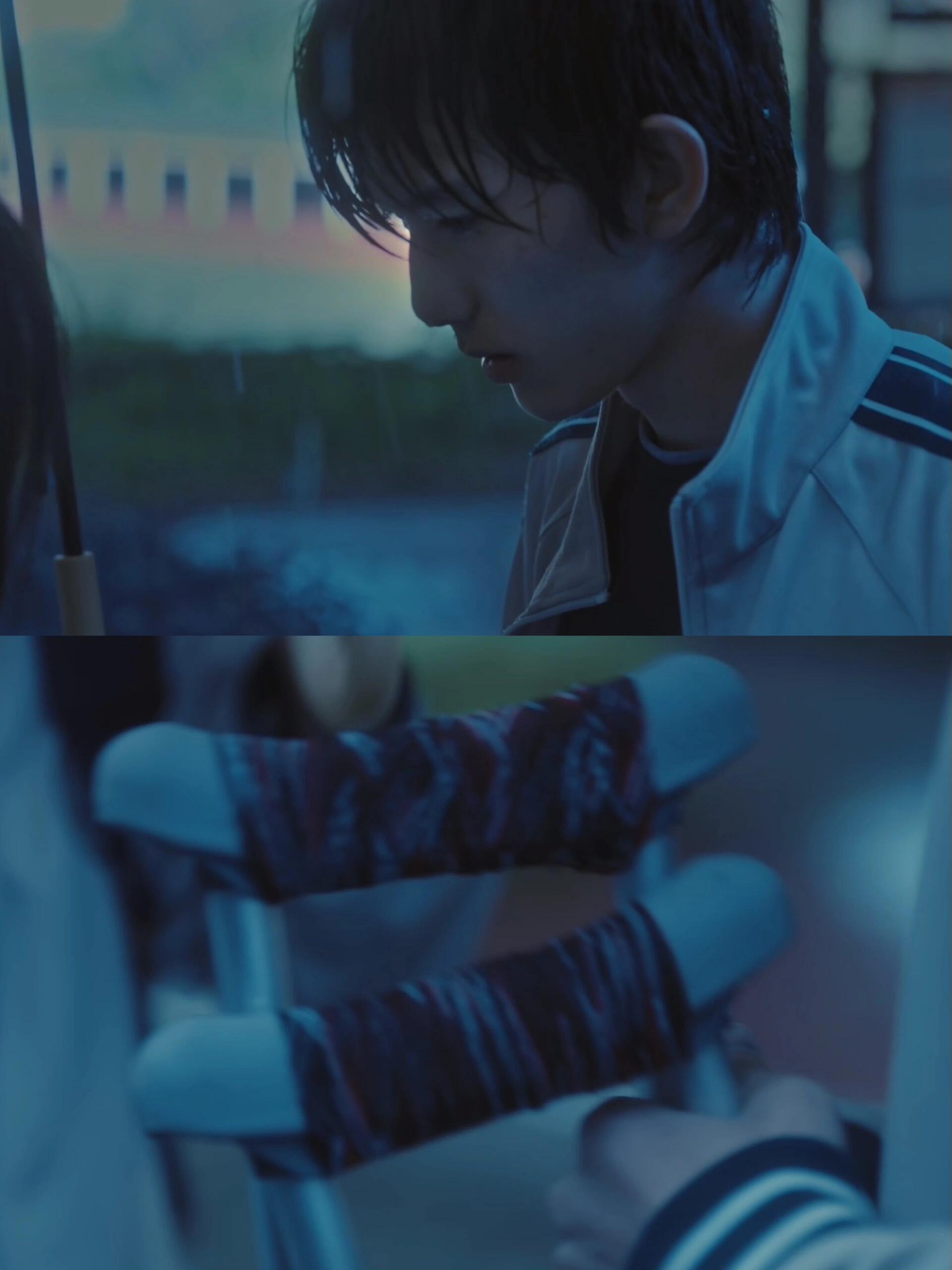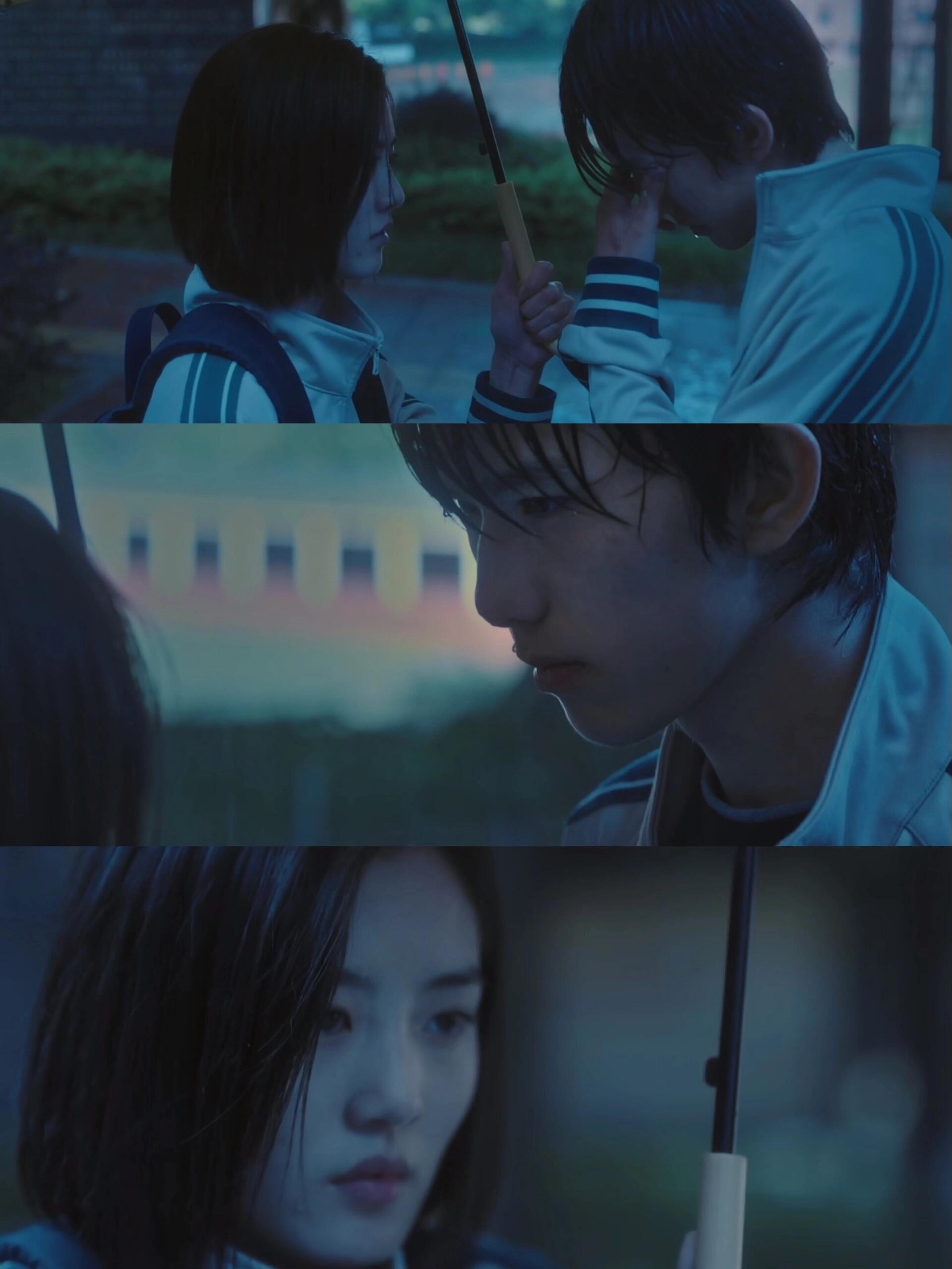 正好此刻雨无情地下着,明明眼睛模糊到无法睁开,但是却在雨里看到了一个同样执着的身影,她拄着拐,拎着书包,在等自己。