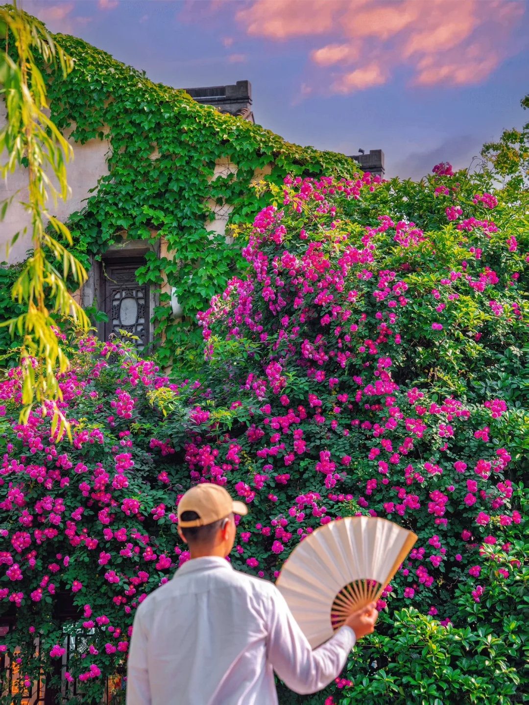 • 这里蔷薇都已进入zui佳赏花期了,全开好了~在一条一条老旧小巷里漫步,走走停停,不经意的转身能与花香撞个满怀~雕花木质门窗、瓦片屋檐、飞檐墙角…都被蔷薇花点缀了,也有几面墙蔷薇花开如瀑布,怎么拍都好好看~