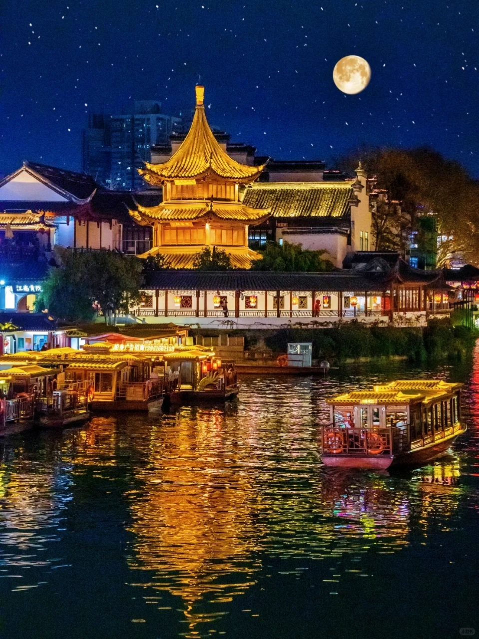 • 来南京总要去一趟秦淮河吧,吹吹河风,感受杜牧诗中所写的“烟笼寒水月笼沙,夜泊秦淮近酒家”~