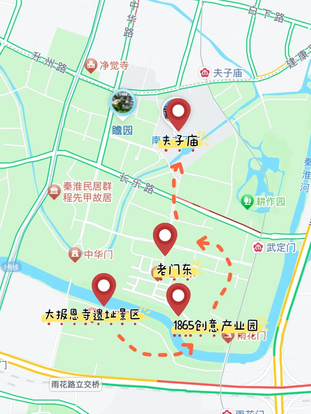 大报恩寺遗址景区➠1865创意产业园➠老门东➠夫子庙